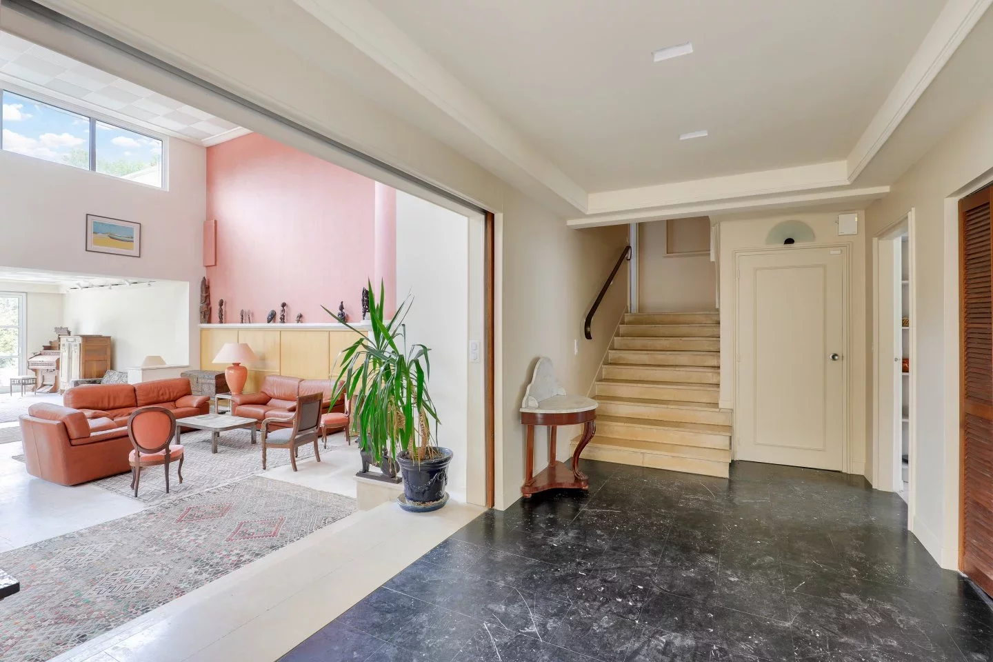 Située dans un environnement résidentiel privilégié, à l’abri des regards, cette propriété à l’architecture singulière séduit par ses volumes exceptionnels et son atmosphère paisible.