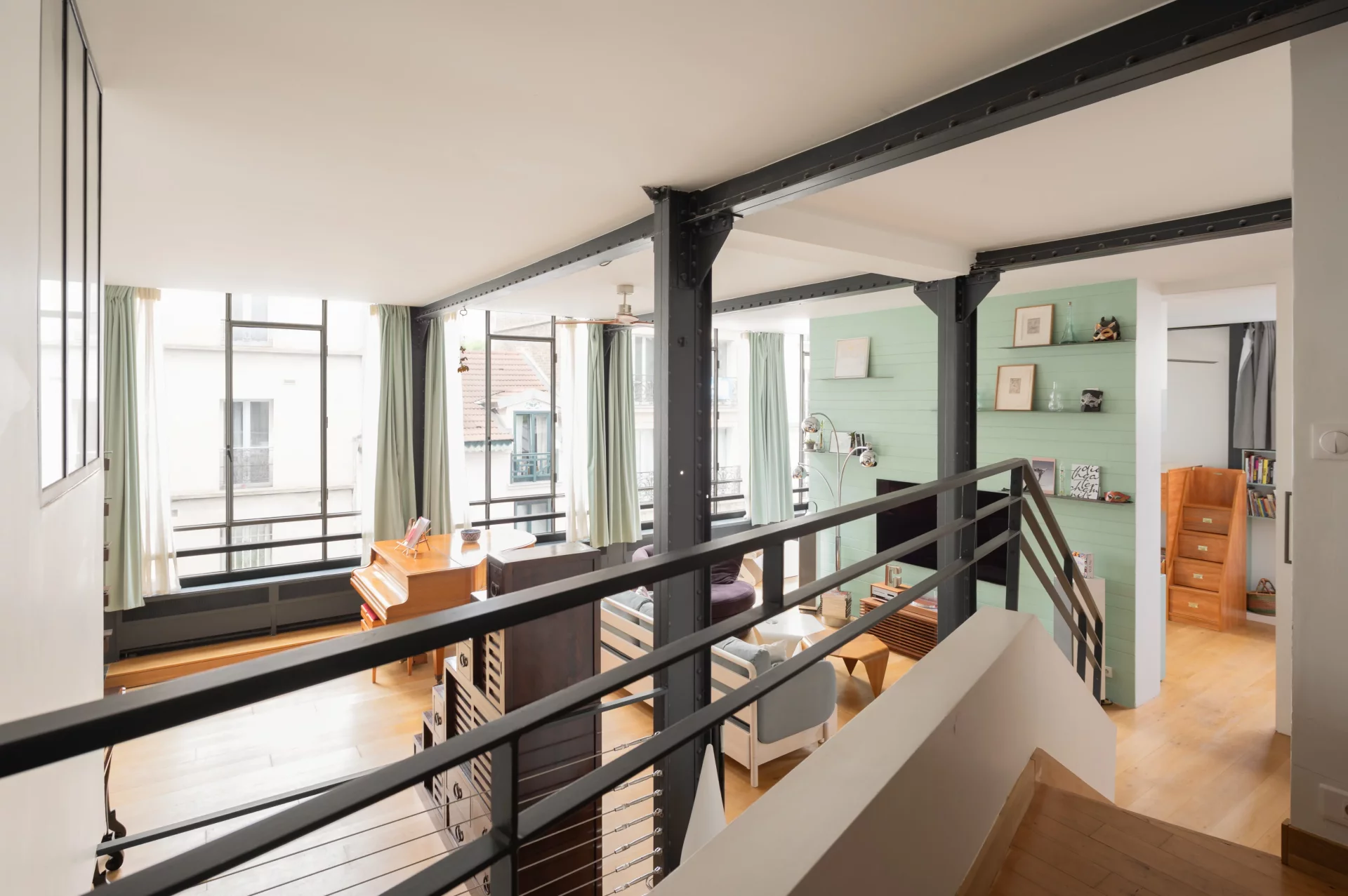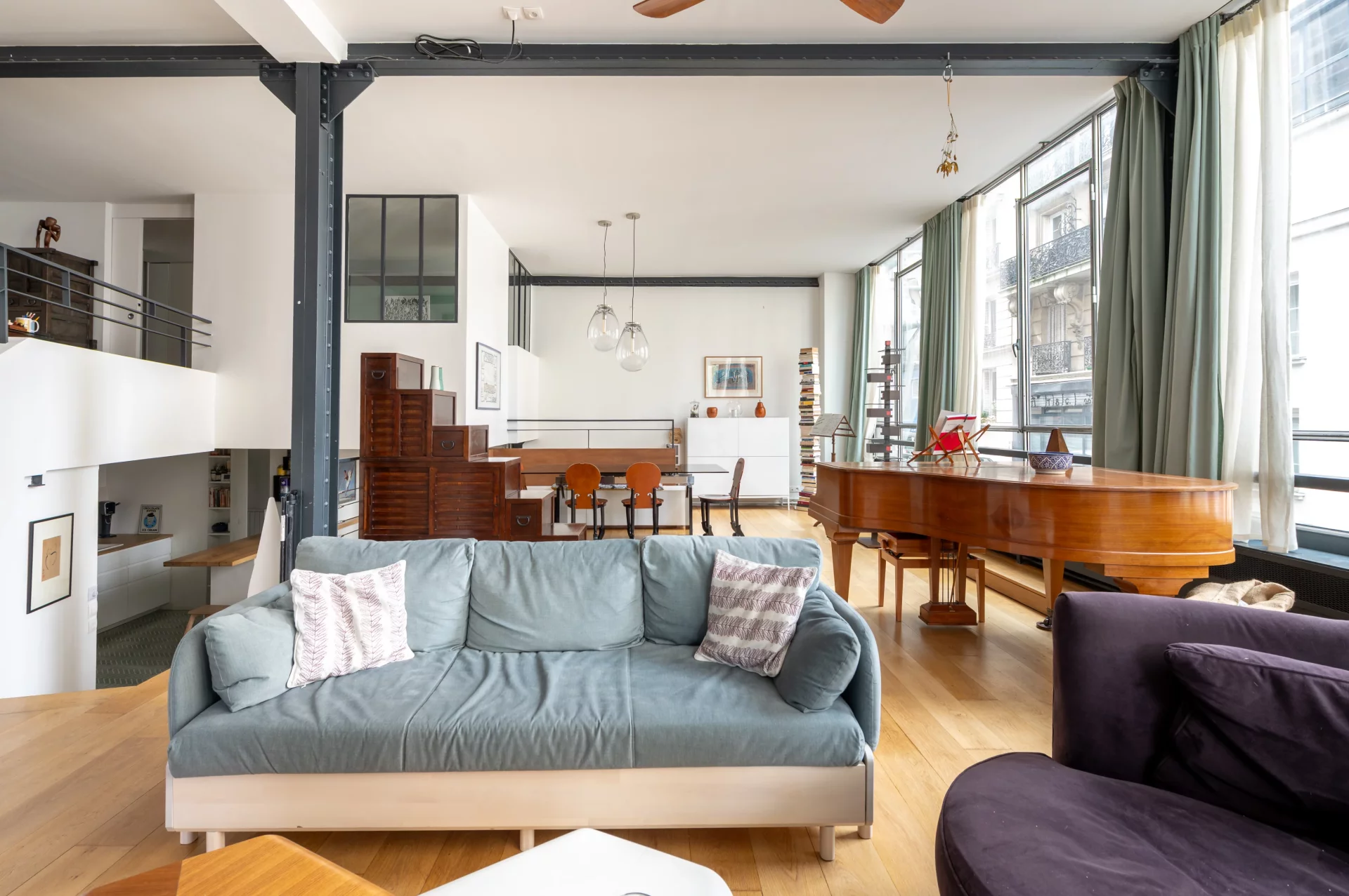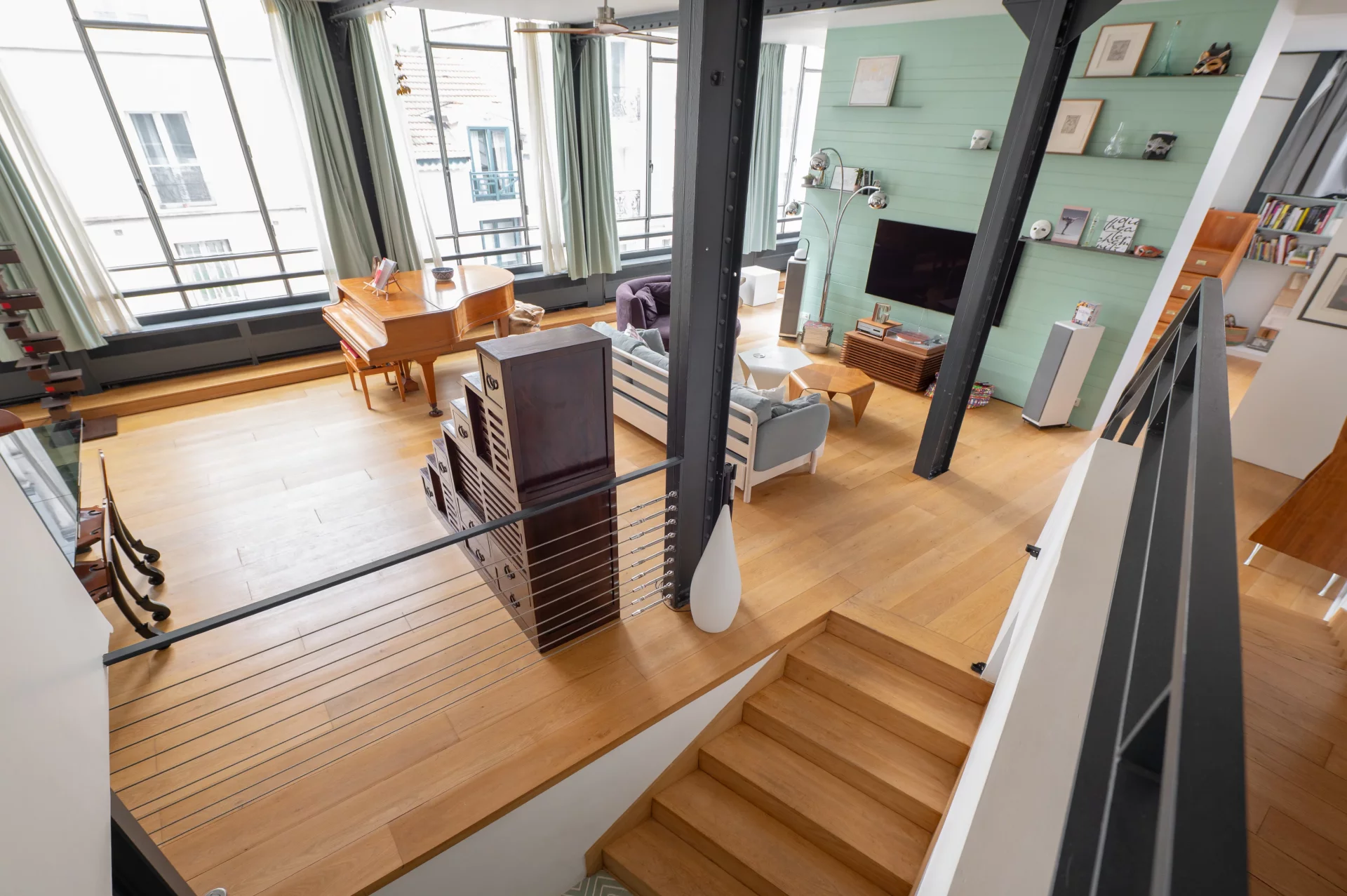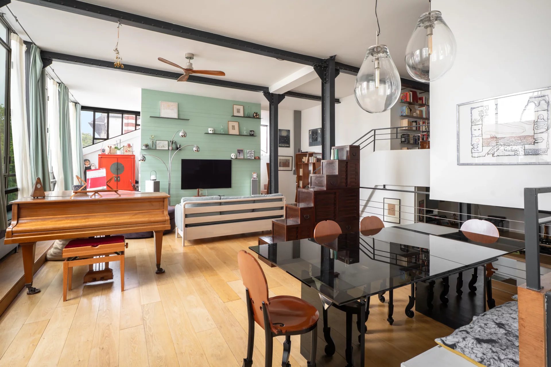 Situé à l'entrée d'une belle copropriété de Montmartre à l'abri des regards, ce superbe atelier-loft, rénové par architecte, d'une superficie de 151,43m² loi Carrez et 158,89m² au sol, offre des volumes exceptionnels et une hauteur sous plafond de 3,50m. Baigné de lumière, il comprend une spacieuse réception de 59,32m² avec large verrière, une cuisine ouverte, trois chambres dont une suite parentale, un bureau, une salle de bains, une douche et deux toilettes. Cet appartement, exposé sud-ouest, est lumineux avec ses grandes ouvertures, dispose d'un bon plan sans aucune perte de place et a bénéficié d'une jolie rénovation avec de très belles prestations.