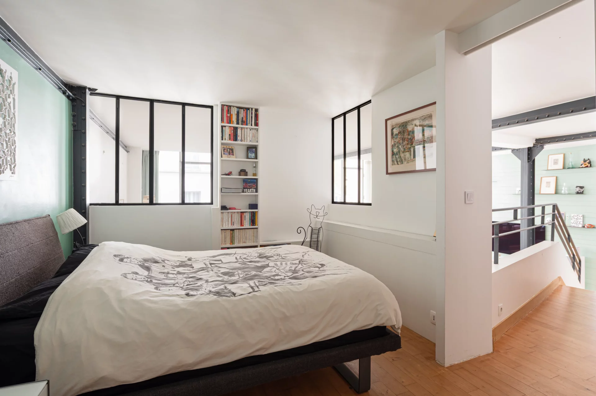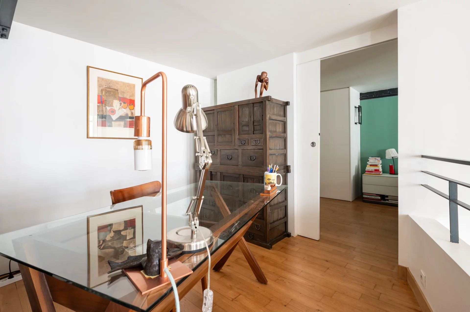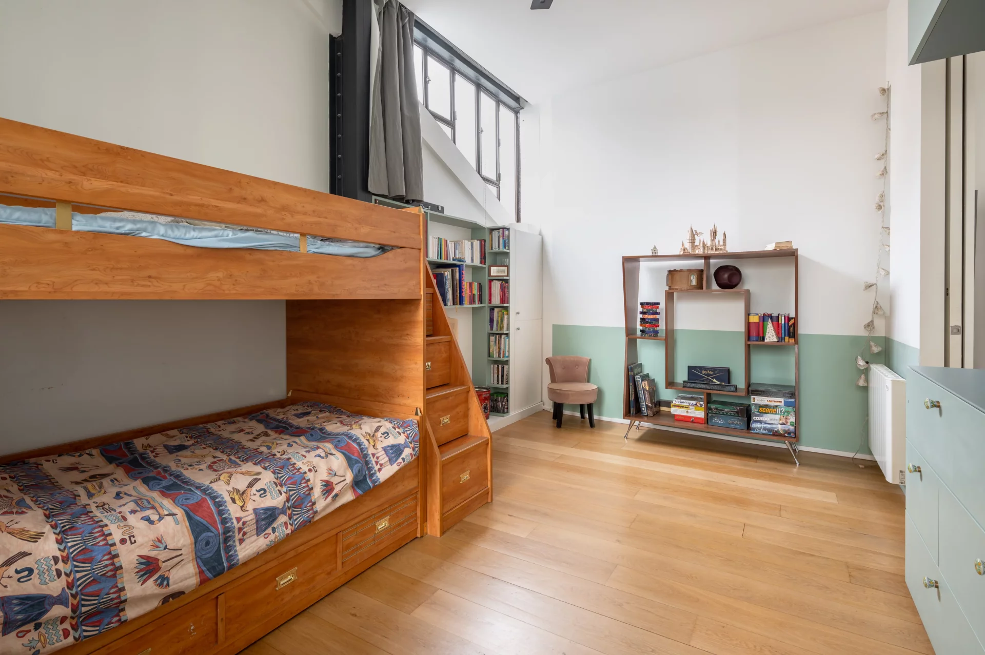 Situé à l'entrée d'une belle copropriété de Montmartre à l'abri des regards, ce superbe atelier-loft, rénové par architecte, d'une superficie de 151,43m² loi Carrez et 158,89m² au sol, offre des volumes exceptionnels et une hauteur sous plafond de 3,50m. Baigné de lumière, il comprend une spacieuse réception de 59,32m² avec large verrière, une cuisine ouverte, trois chambres dont une suite parentale, un bureau, une salle de bains, une douche et deux toilettes. Cet appartement, exposé sud-ouest, est lumineux avec ses grandes ouvertures, dispose d'un bon plan sans aucune perte de place et a bénéficié d'une jolie rénovation avec de très belles prestations.