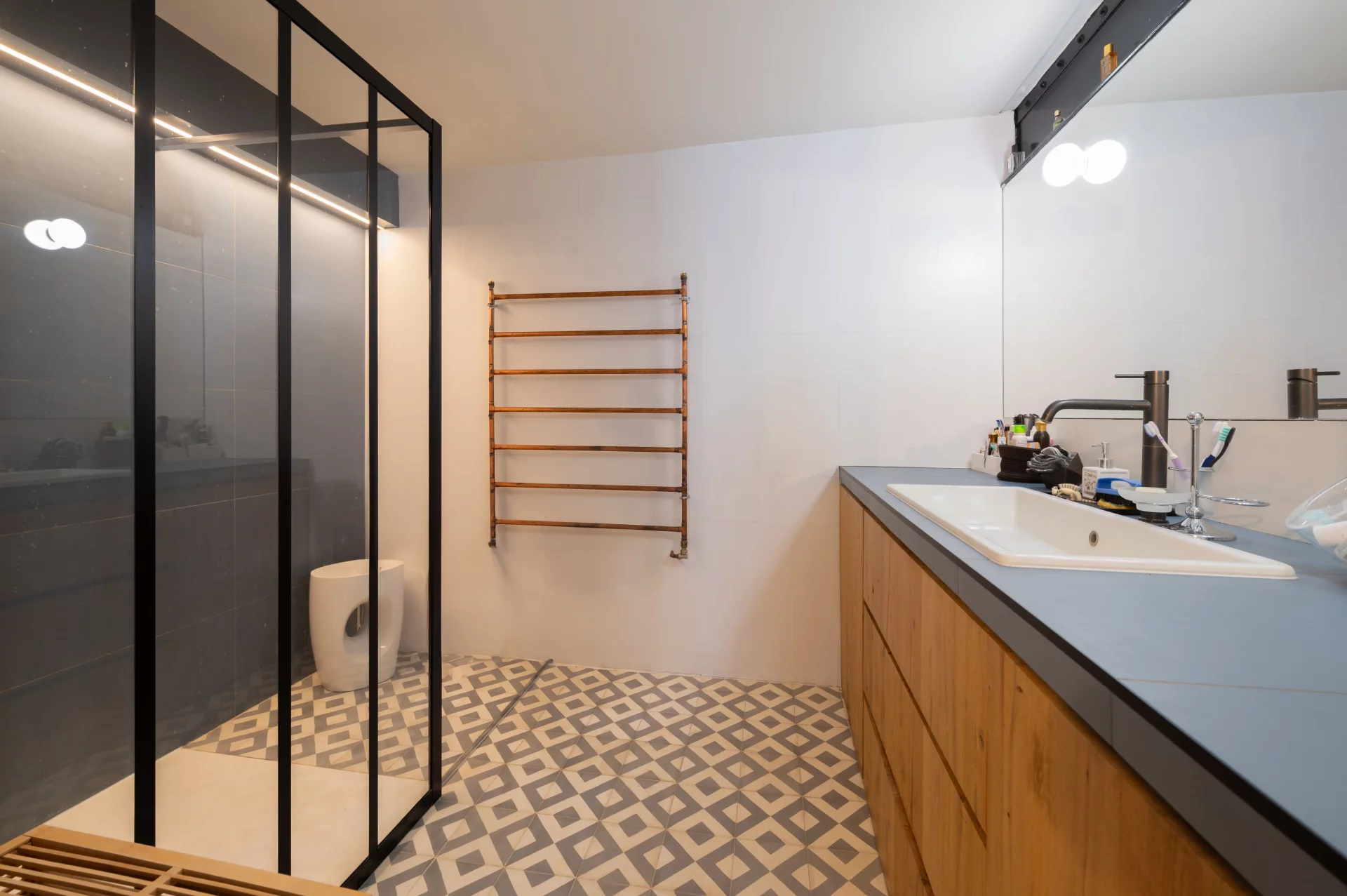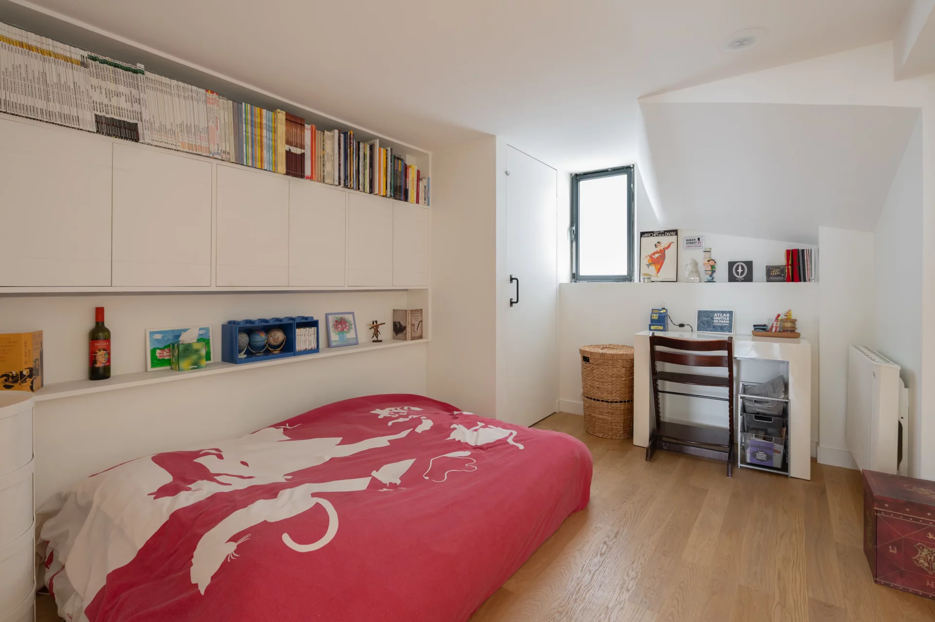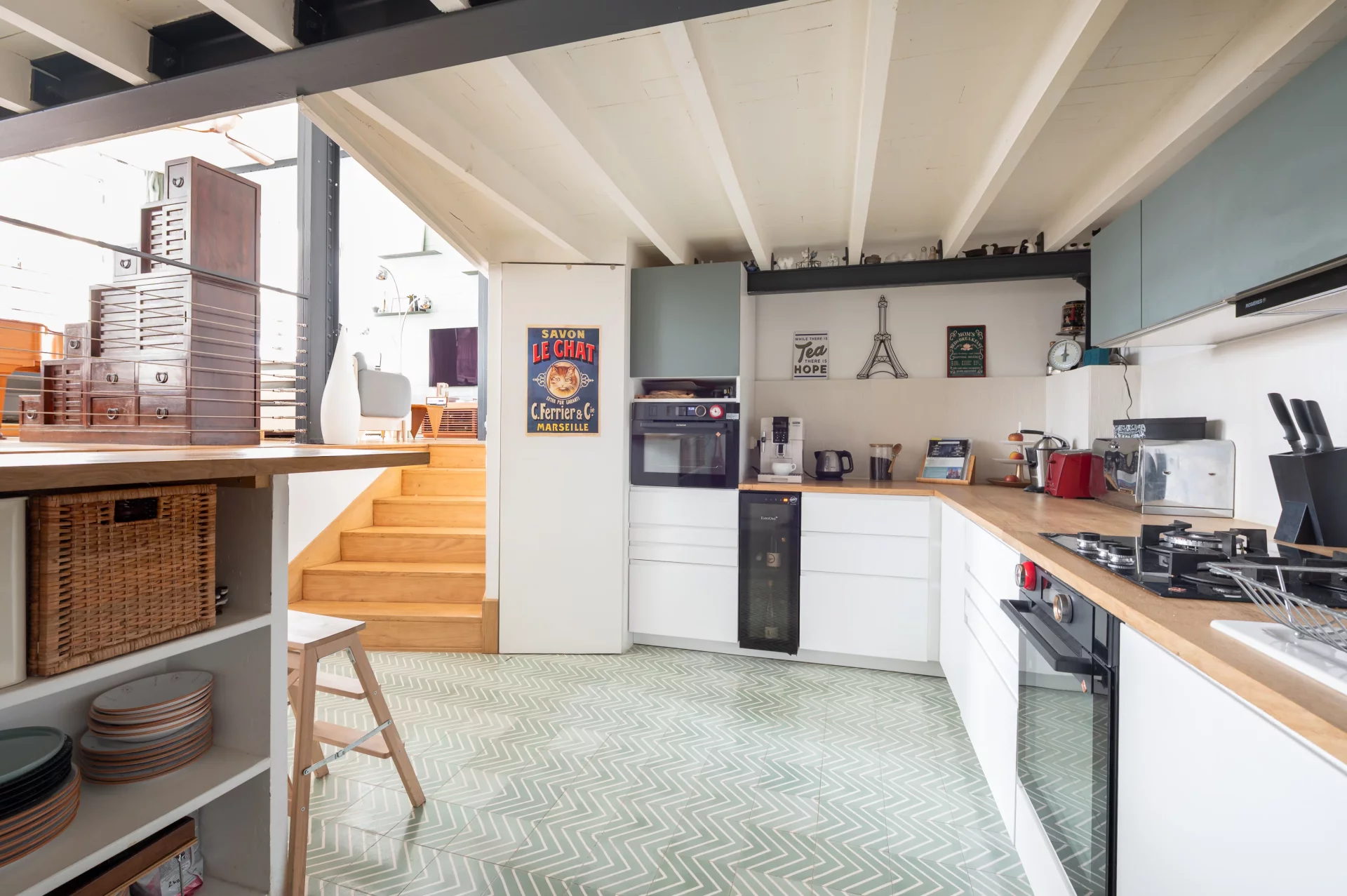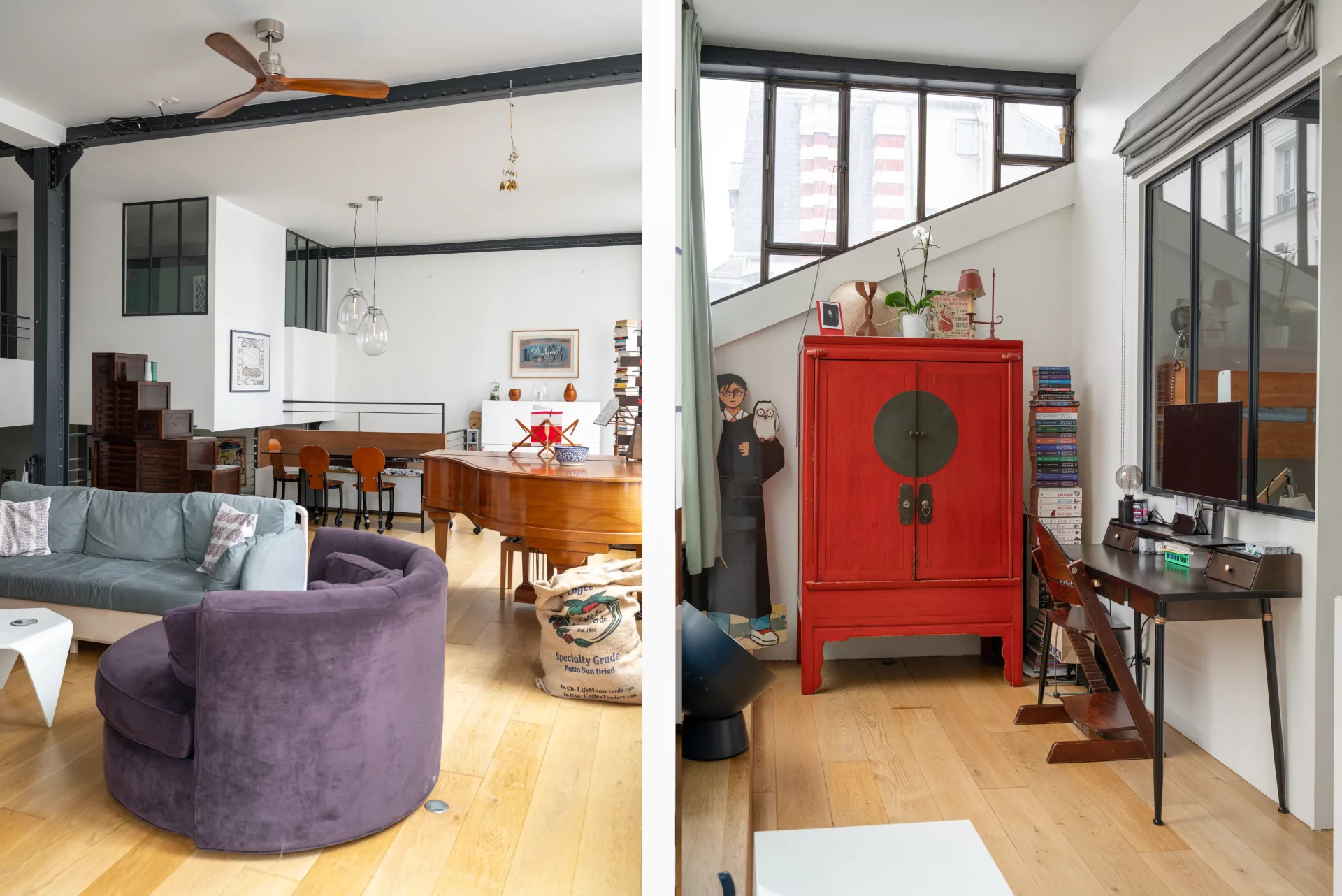 Situé à l'entrée d'une belle copropriété de Montmartre à l'abri des regards, ce superbe atelier-loft, rénové par architecte, d'une superficie de 151,43m² loi Carrez et 158,89m² au sol, offre des volumes exceptionnels et une hauteur sous plafond de 3,50m. Baigné de lumière, il comprend une spacieuse réception de 59,32m² avec large verrière, une cuisine ouverte, trois chambres dont une suite parentale, un bureau, une salle de bains, une douche et deux toilettes. Cet appartement, exposé sud-ouest, est lumineux avec ses grandes ouvertures, dispose d'un bon plan sans aucune perte de place et a bénéficié d'une jolie rénovation avec de très belles prestations.