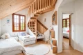 À l’étage, l’espace nuit se compose de cinq chambres confortables, dont certaines profitent d’une jolie vue sur le jardin et une avec mezzanine. Une salle de bains, une salle de douche indépendante ainsi qu’un toilette séparé complètent cet étage avec praticité et élégance.