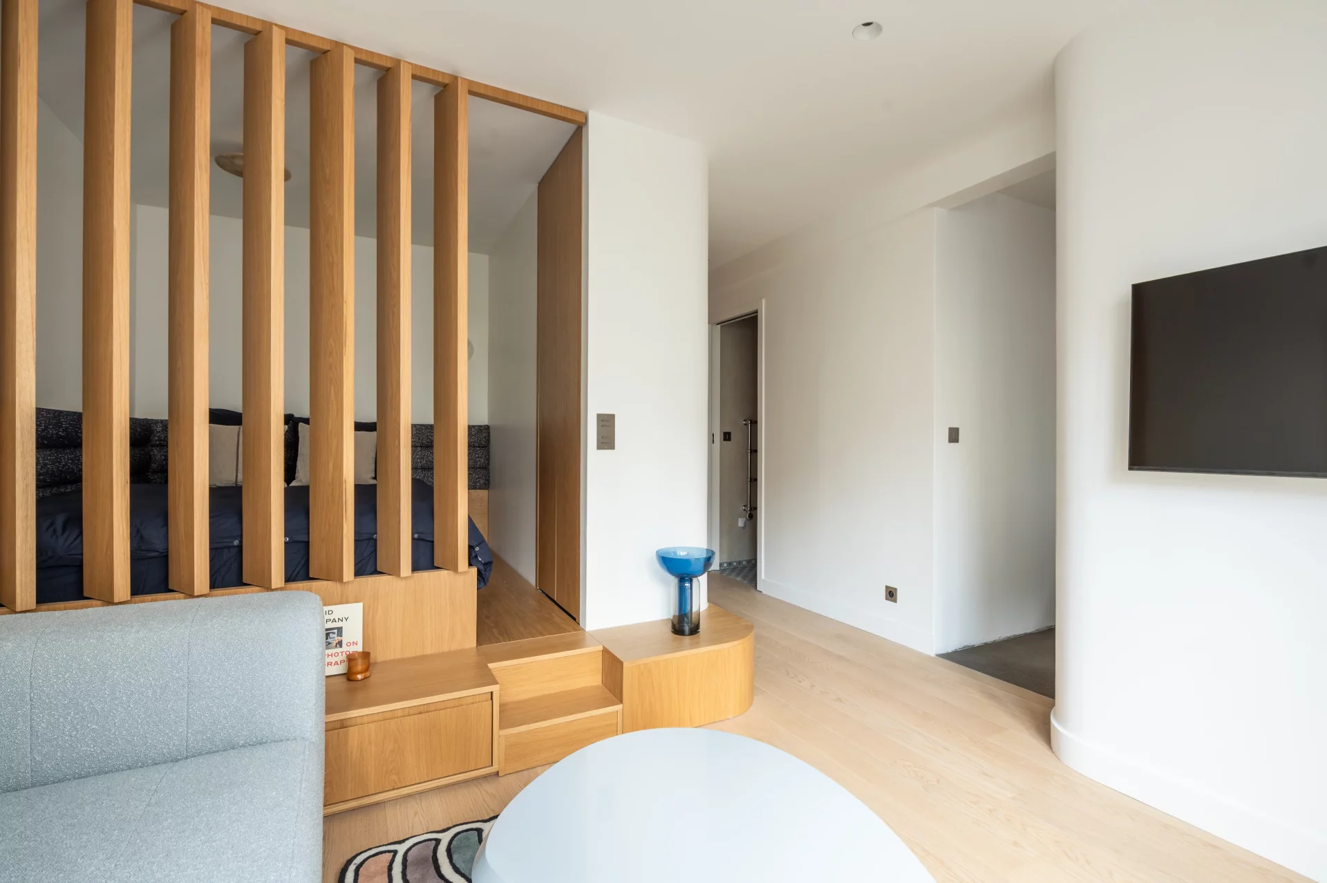 Situé au deuxième étage par ascenseur d'un immeuble de standing moderne, cet élégant appartement de 27,84m² loi Carrez a été entièrement réhabilité récemment par un cabinet d'architecture.