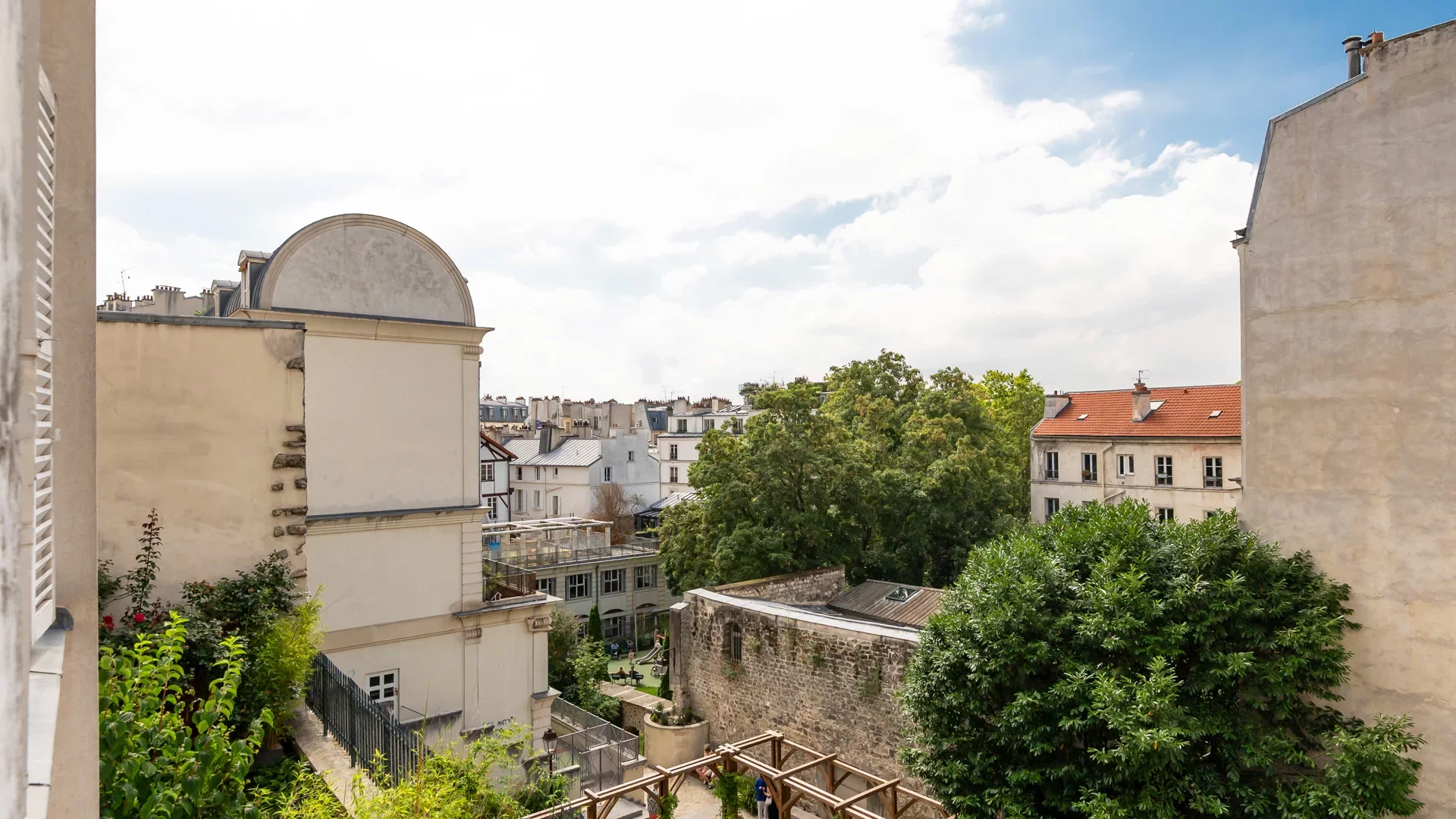 Au cœur du quartier des Abbesses, appartement entièrement rénové de 62m² environ. Lumineux, il offre une vue époustouflante sur un jardin en contrebas.