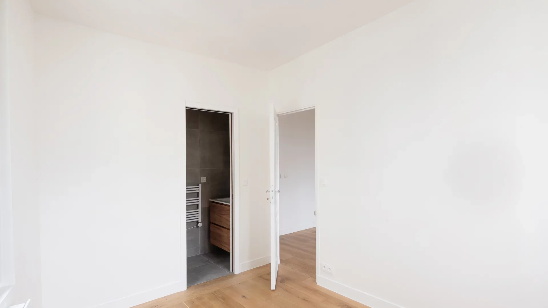 Son plan comprend une entrée, un vaste double séjour orienté sud et doté d'une cheminée, une cuisine indépendante, une première chambre avec une salle de bains séparée par une élégante verrière, une seconde chambre avec salle de douche et des toilettes séparées.