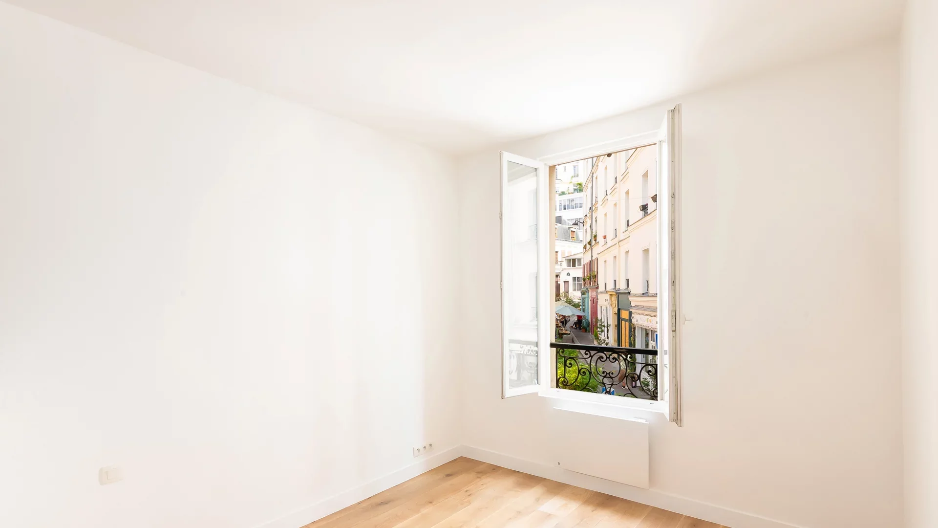 Au calme à proximité immédiate des commerces et des transports de la rue des Abbesses.