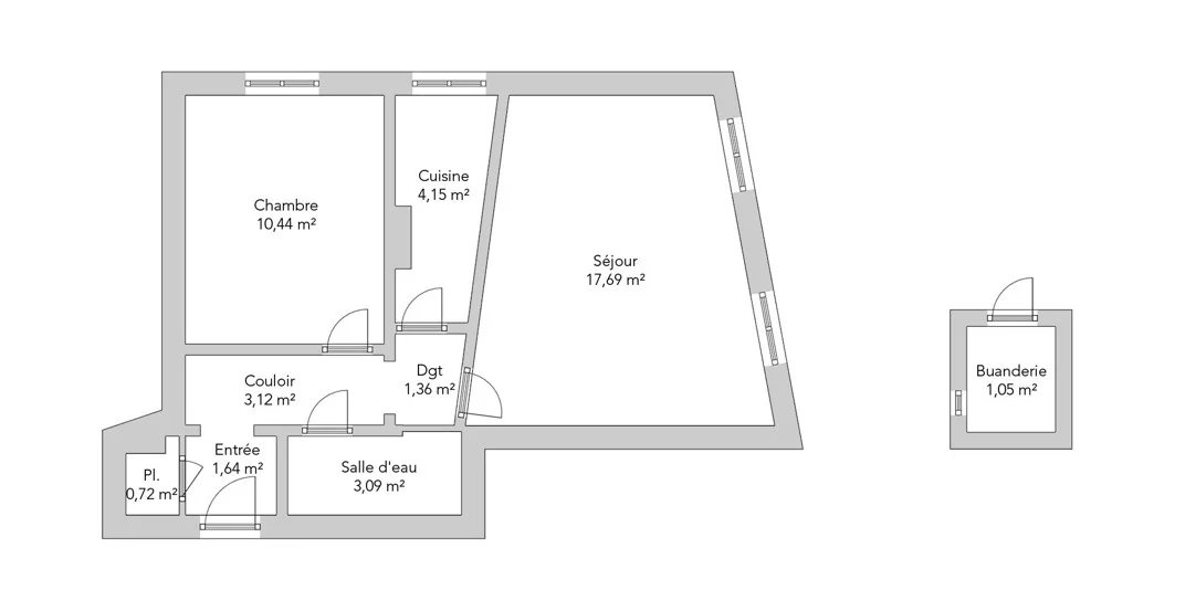 | 1x Couloir | 3.12 m² | Étage : 5ème |
