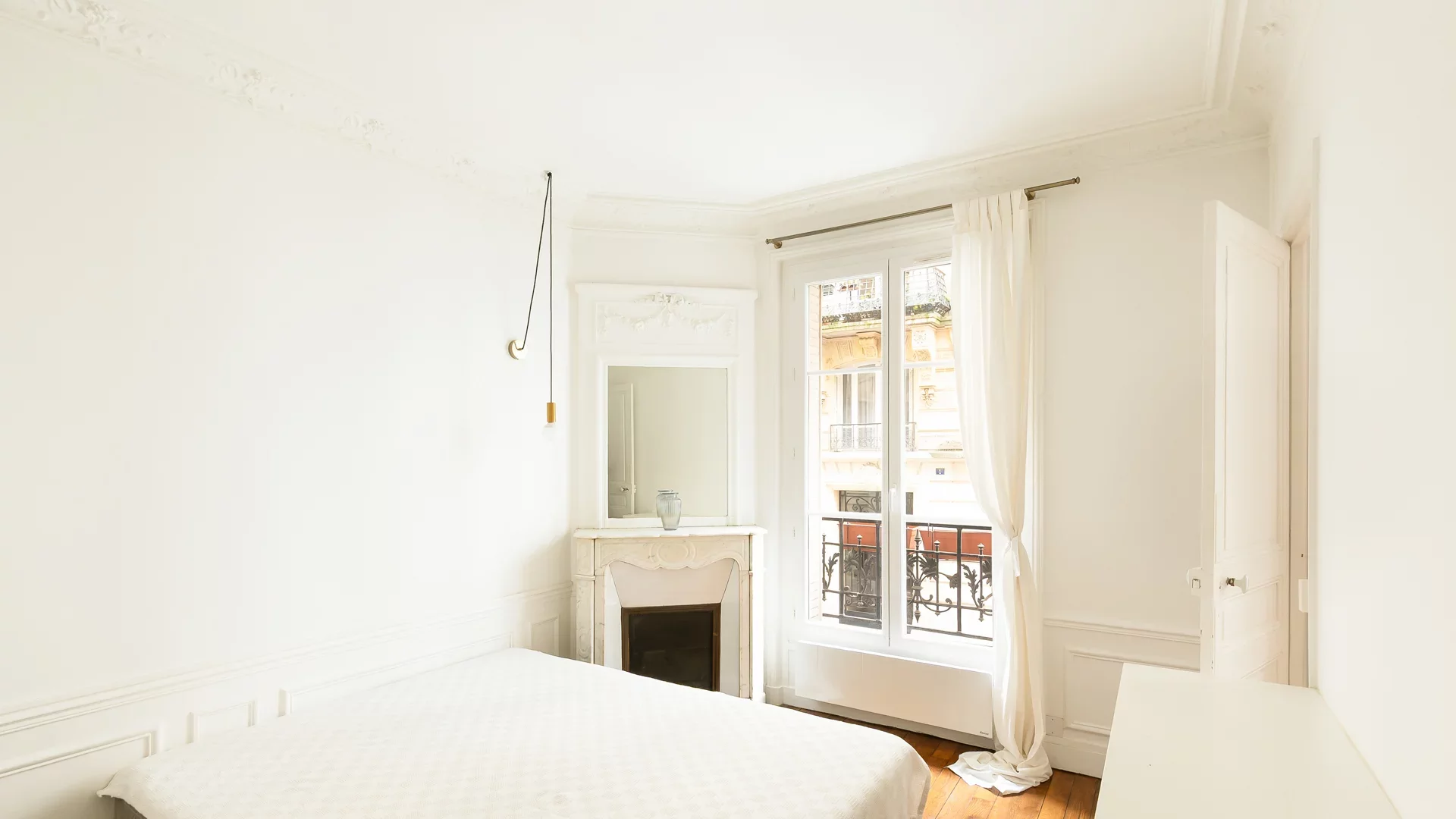 Il se compose d’une entrée, d’un séjour lumineux avec belle hauteur sous plafond, d’une chambre, d’une cuisine indépendante, d’une salle de douche avec toilettes et d’un dressing. Le charme de l’ancien a été préservé avec parquet, moulures et cheminée.