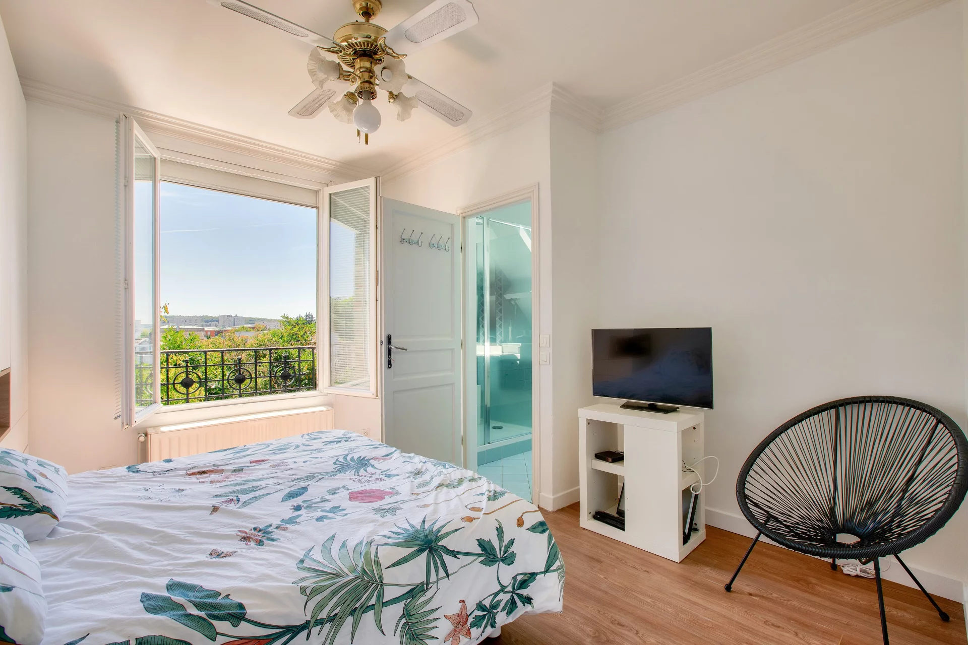 Au premier étage, le palier dessert, une vaste salle de bains, ainsi que trois chambres, dont une suite parentale spacieuse, avec dressing, salle de douche et toilettes.