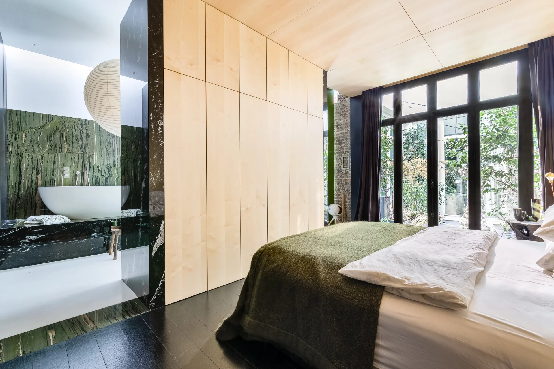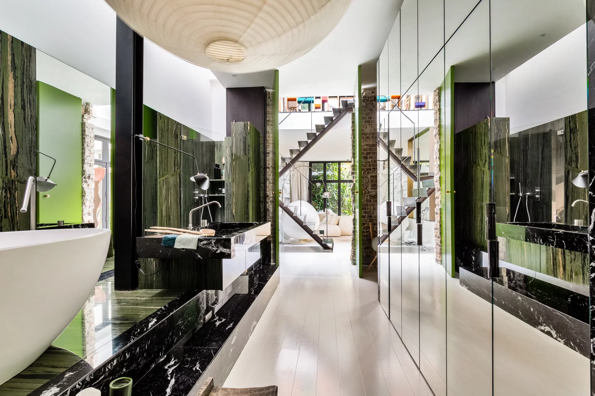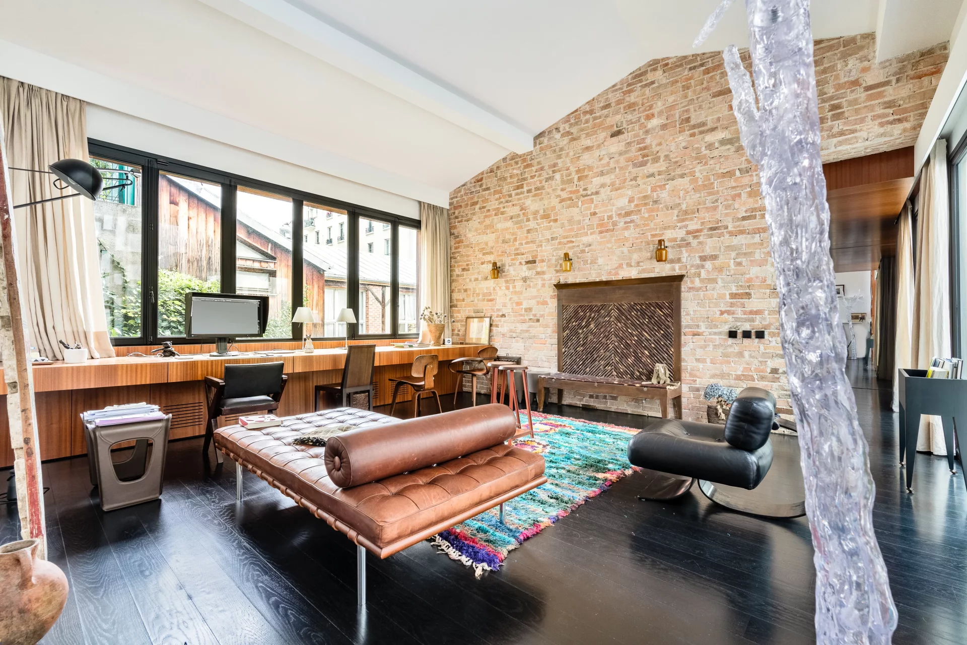 Niché au sein d'une des copropriétés les plus recherchées des Abbesses, somptueux appartement en duplex, comme une maison, ouvert sur deux espaces extérieurs, d'une superficie de 158,62m² loi Carrez et 160,42m² au sol. Ce bien remarquablement rénové, propose, au premier niveau, un vaste espace de vie parfaitement aménagé avec cuisine dînatoire et séjour traversant prolongé de deux terrasses. Côté nuit, une chambre principale aménagée en suite. Au second niveau, un grand bureau transformable en deux chambres et une salle de bains. Bien exceptionnel, rarement disponible à Montmartre.