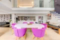 Situé dans un immeuble de caractère, l’appartement se déploie sur deux niveaux.