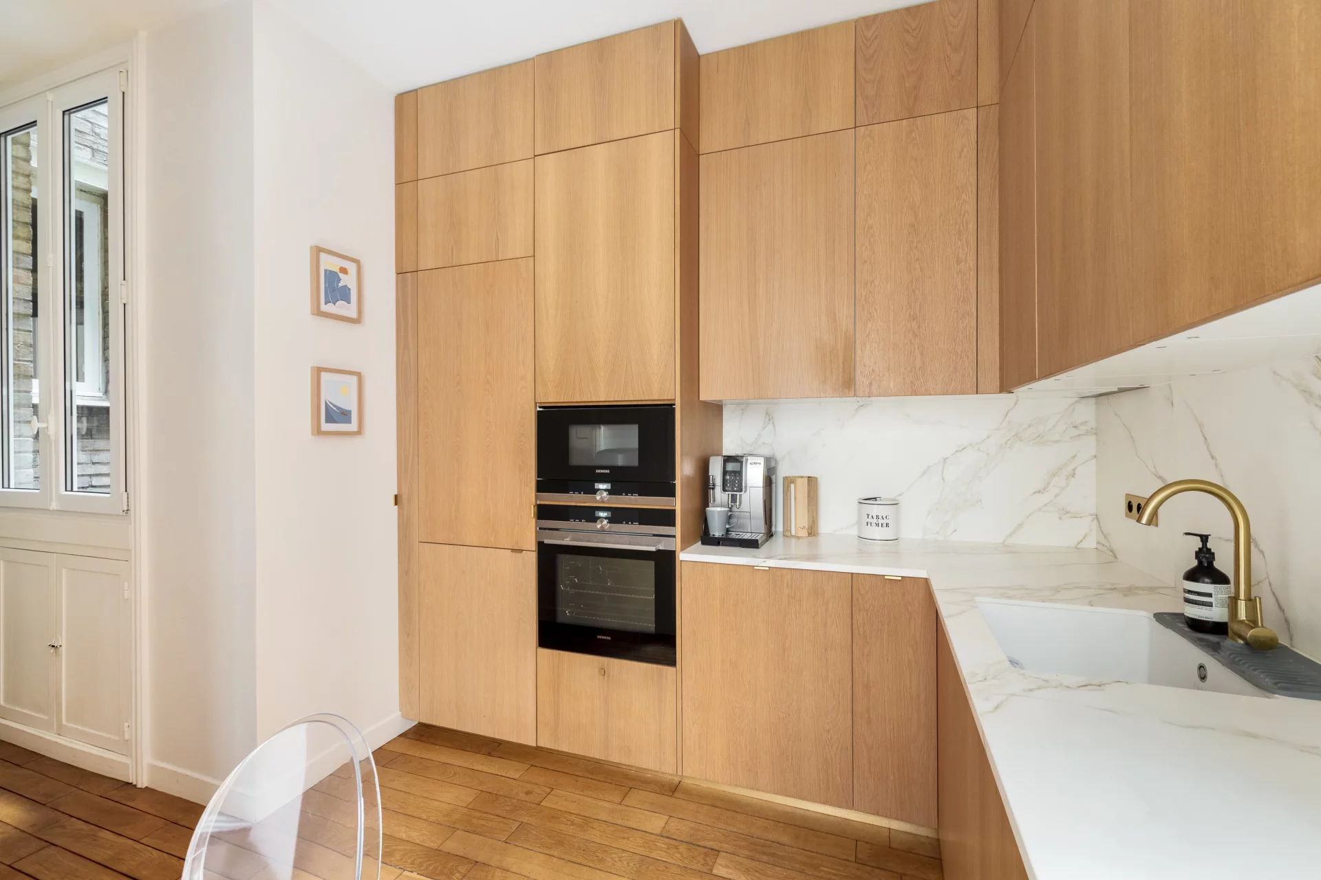 Dans un très bel immeuble en pierre de taille, au troisième étage avec ascenseur, magnifique appartement traversant de 99,48m² loi Carrez. Refait avec goût et élégance, il propose des prestations de qualité.