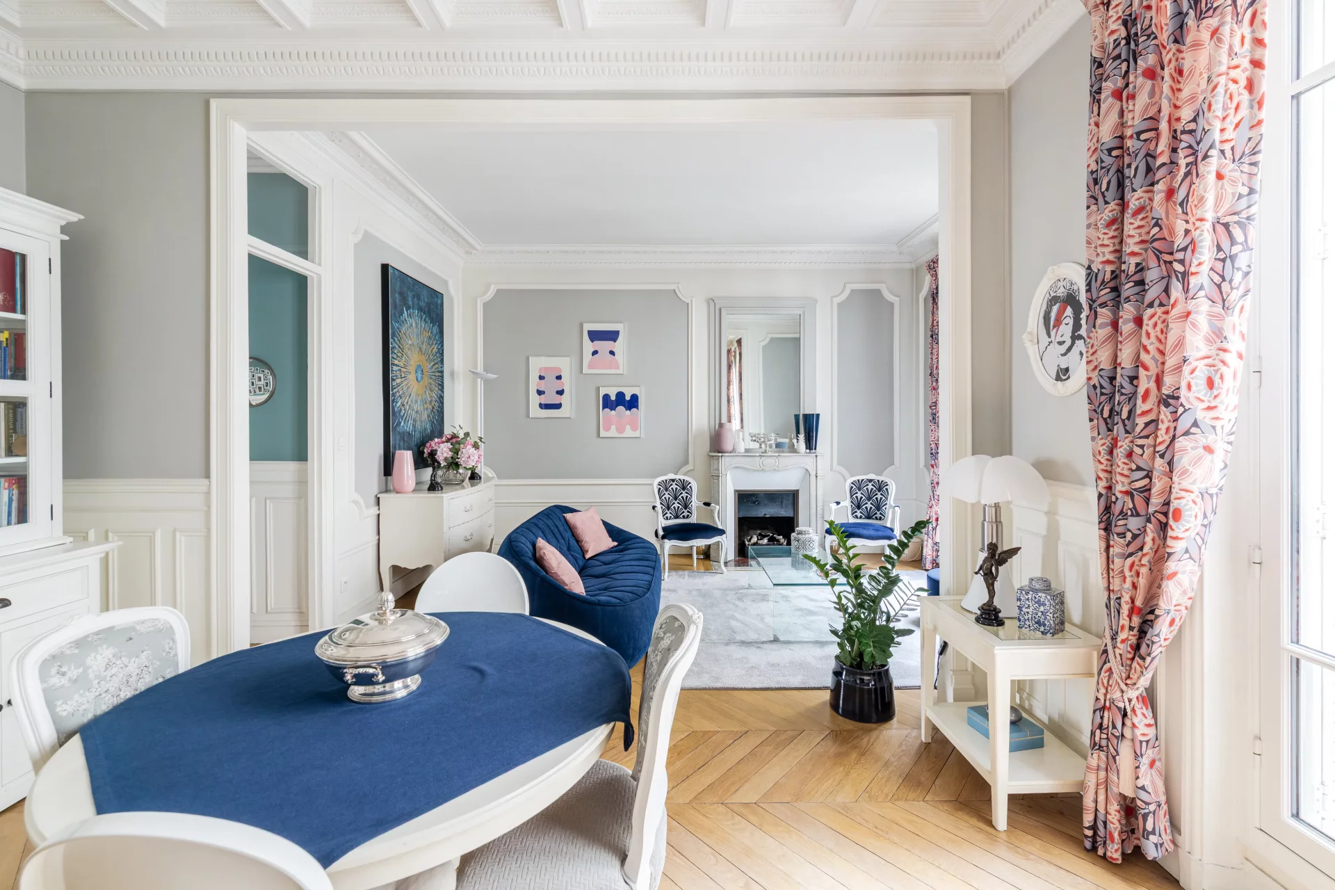 Au deuxième étage par ascenseur d'un bel immeuble en pierre de taille parfaitement entretenu, superbe trois pièces traversant de 71,51m² loi Carrez, en parfait état.