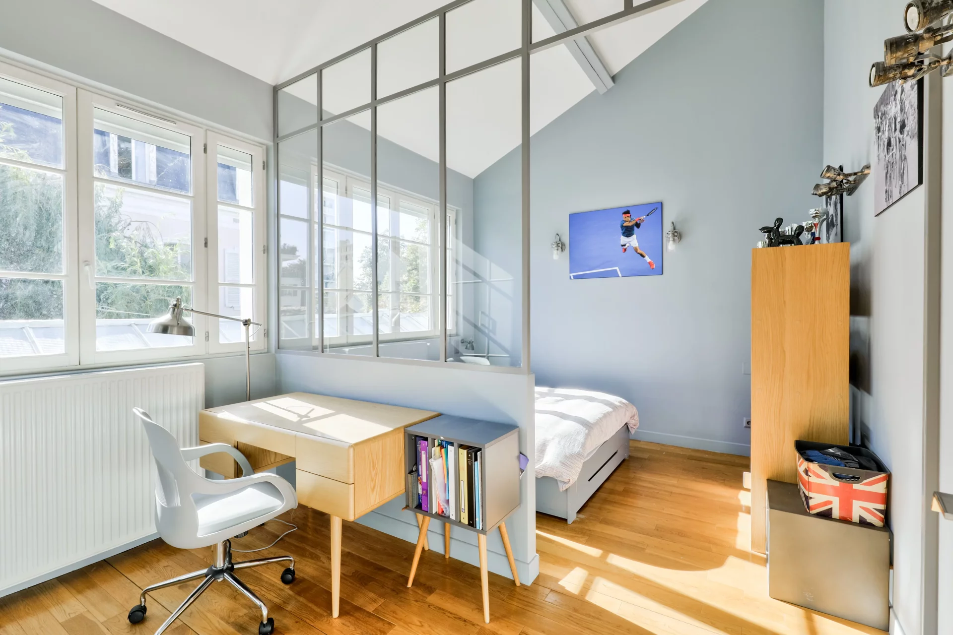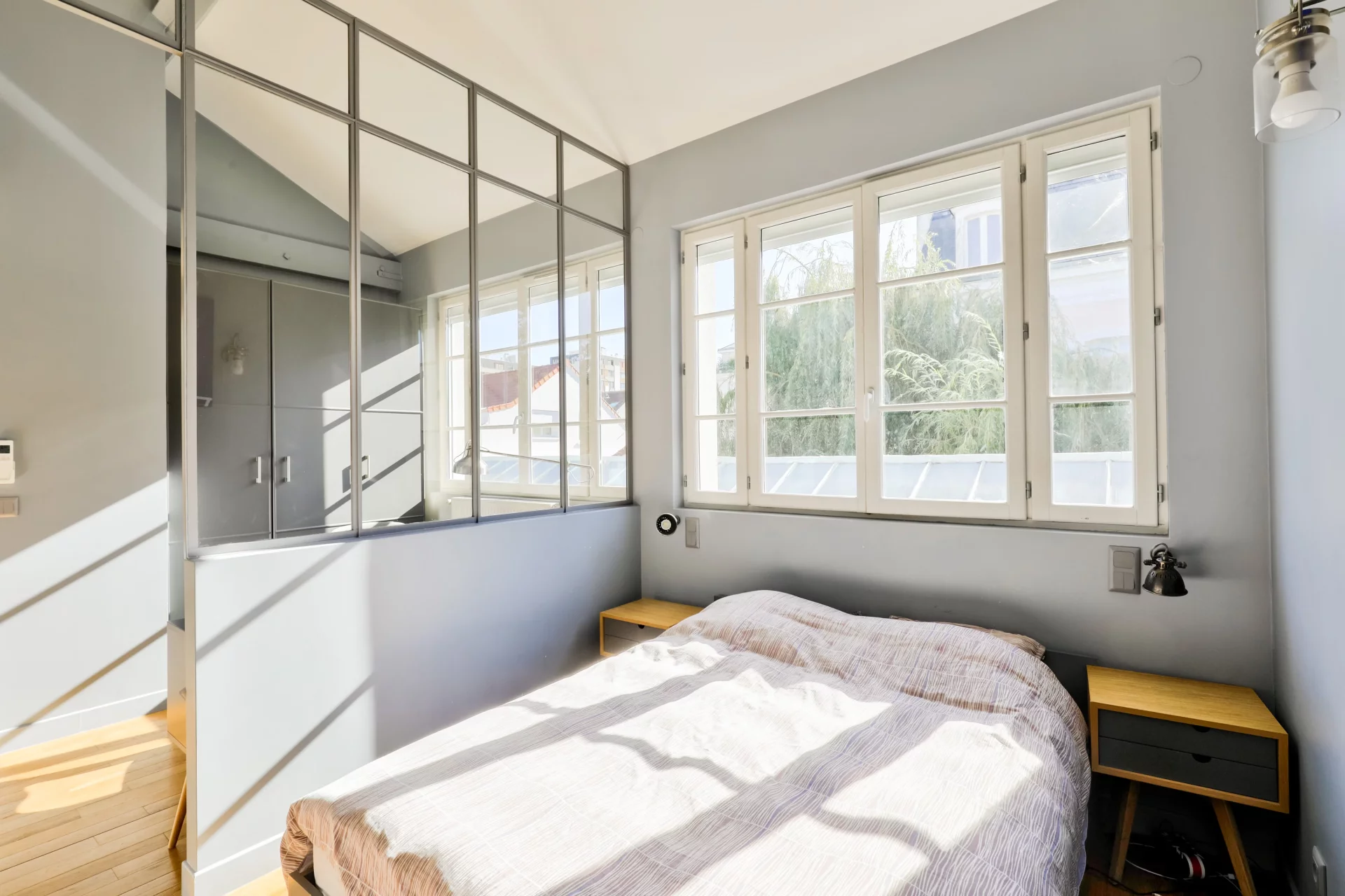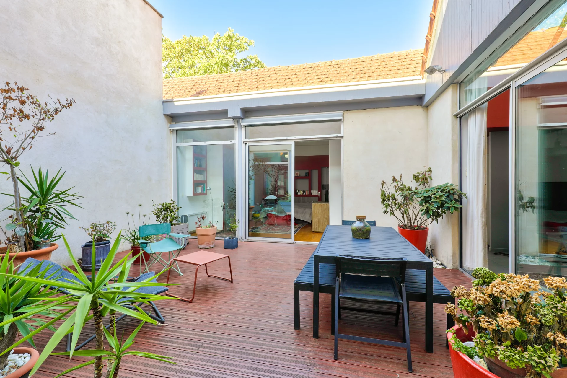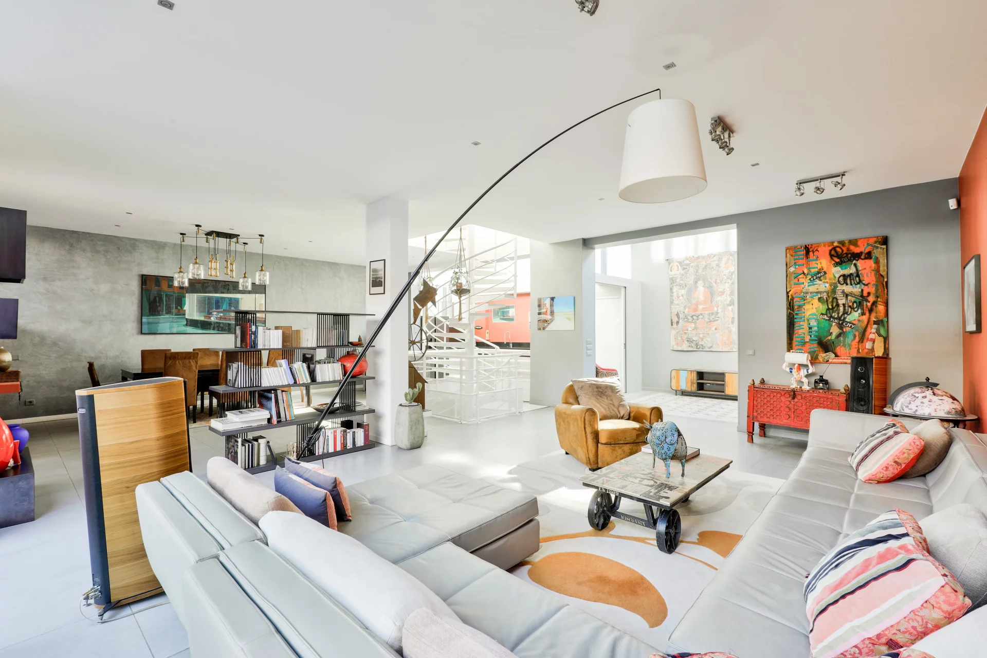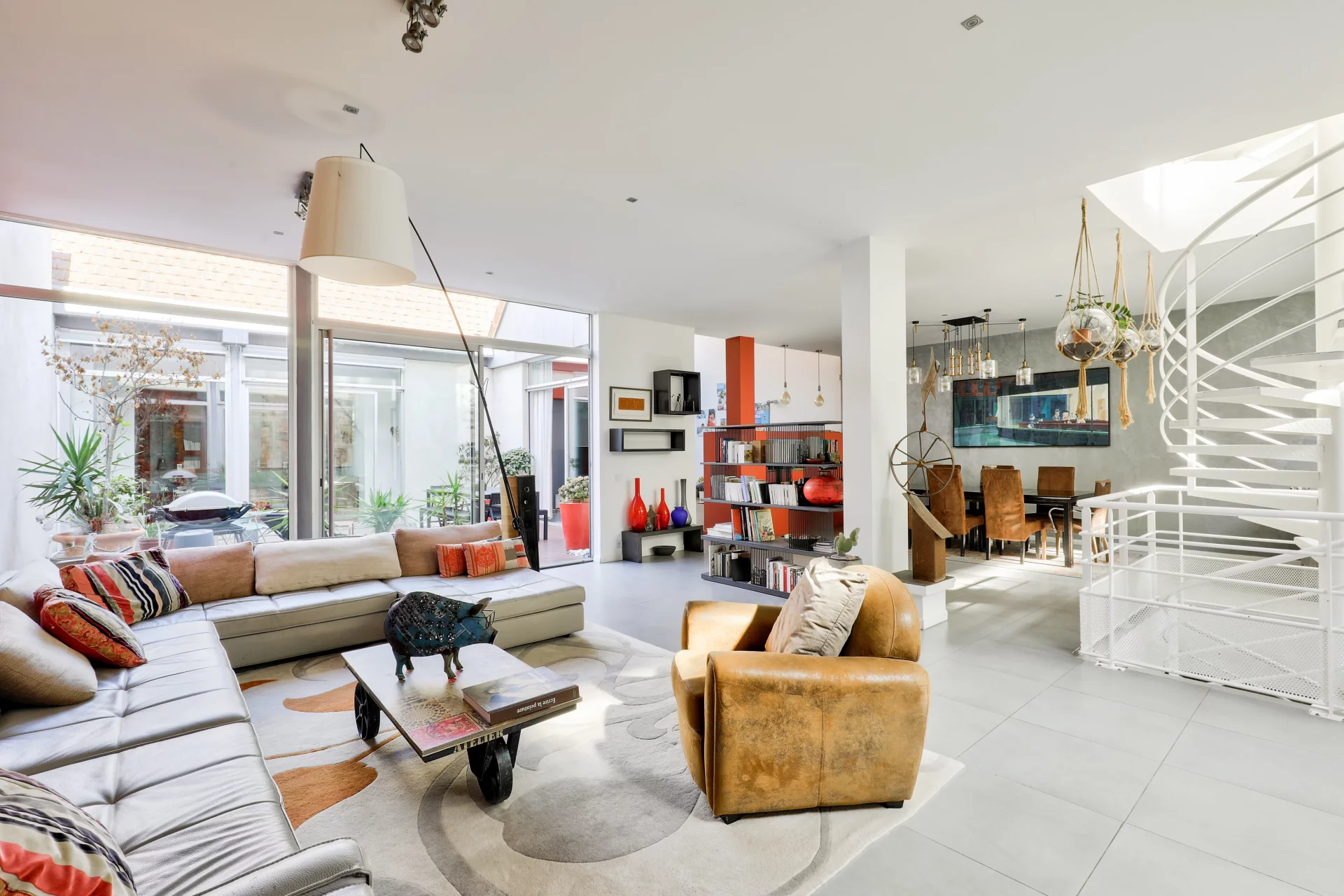 À proximité immédiate des transports, des commerces et des établissements scolaires, ce loft confidentiel de 238m², au calme absolu, séduit par ses volumes remarquables organisés autour d’un patio central de 37m², véritable cœur de vie à l’abri des regards.
