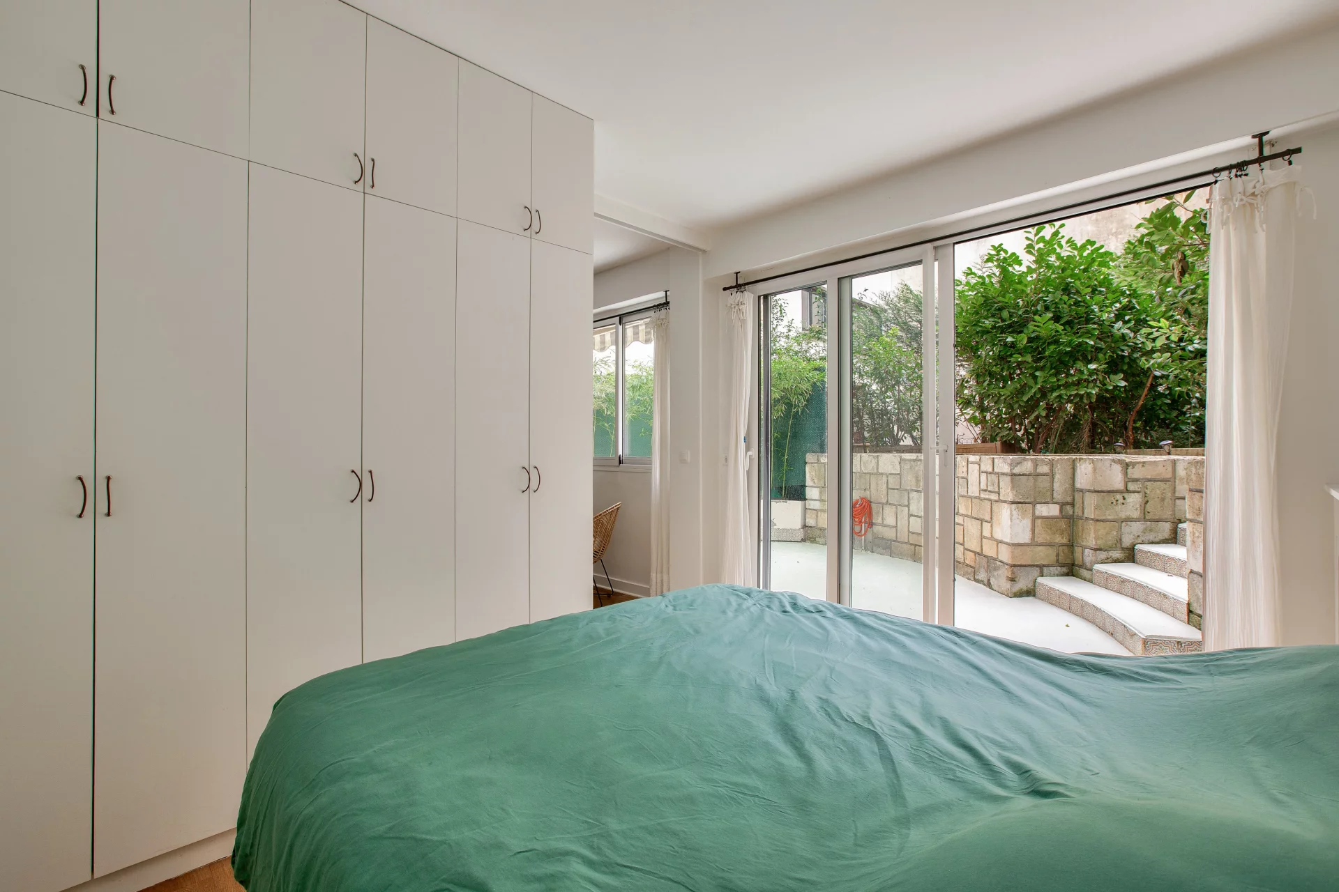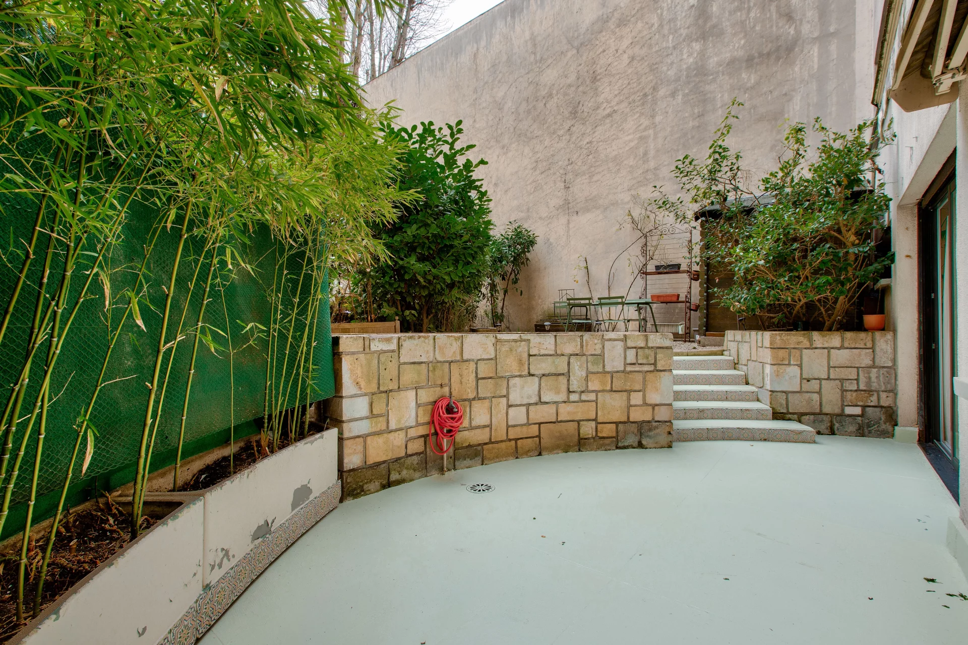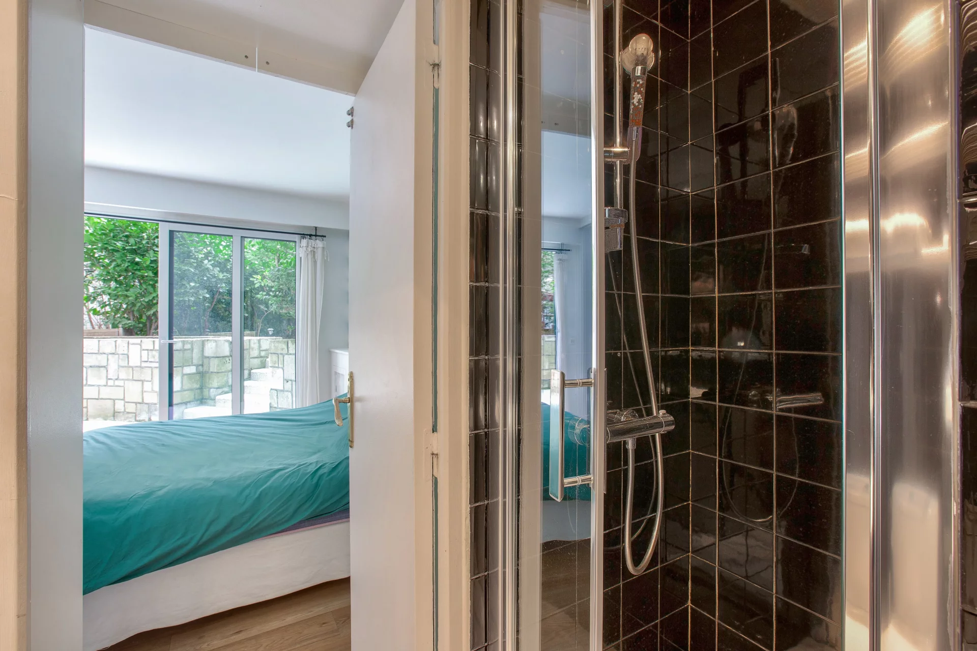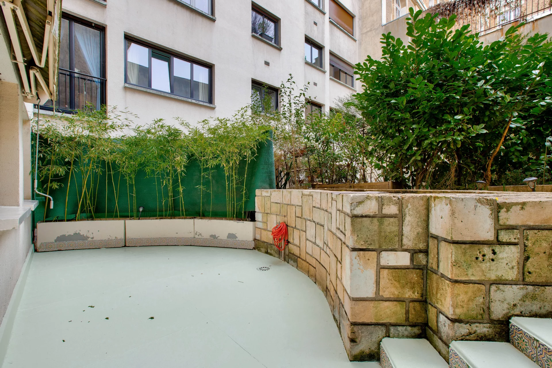 Rue Octave Feuillet, au sein d'un immeuble de standing semi-récent, appartement de deux pièces de 35,15m² loi Carrez entièrement rénové avec terrasse et jardin.