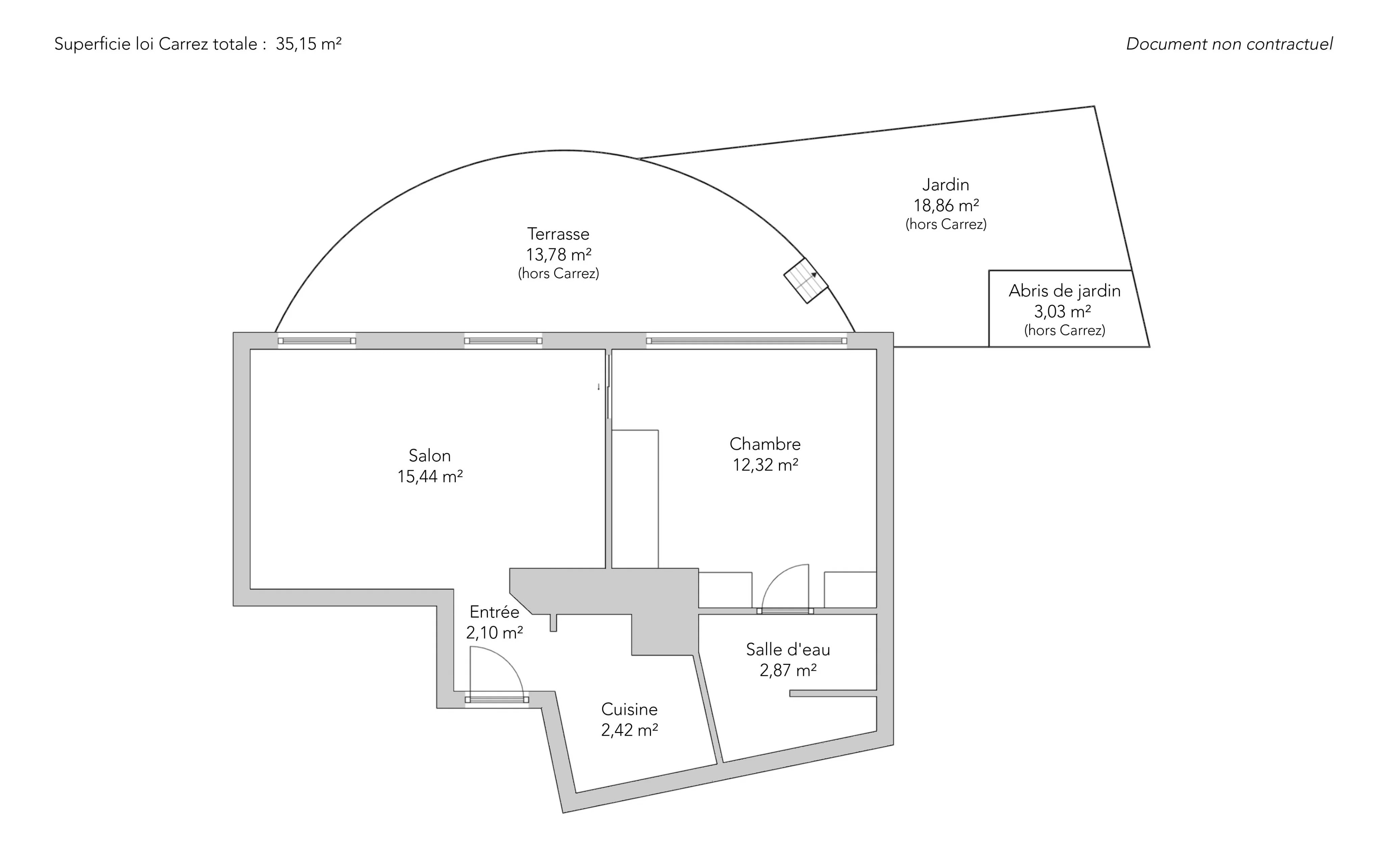 | 1x Entrée | 2.1 m² | Étage : Rez-de-jardin |