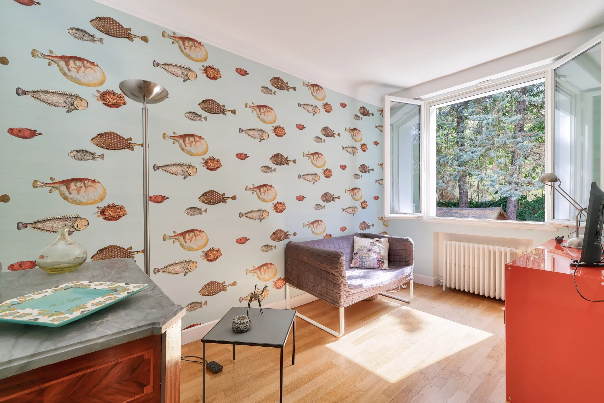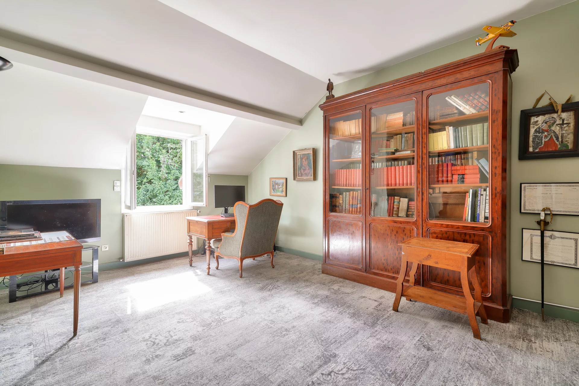 Une entrée indépendante depuis le perron permet d’envisager l’installation d’un bureau ou d’une activité professionnelle à domicile, offrant ainsi la possibilité de travailler tout en conservant l’intimité de l’espace familial.