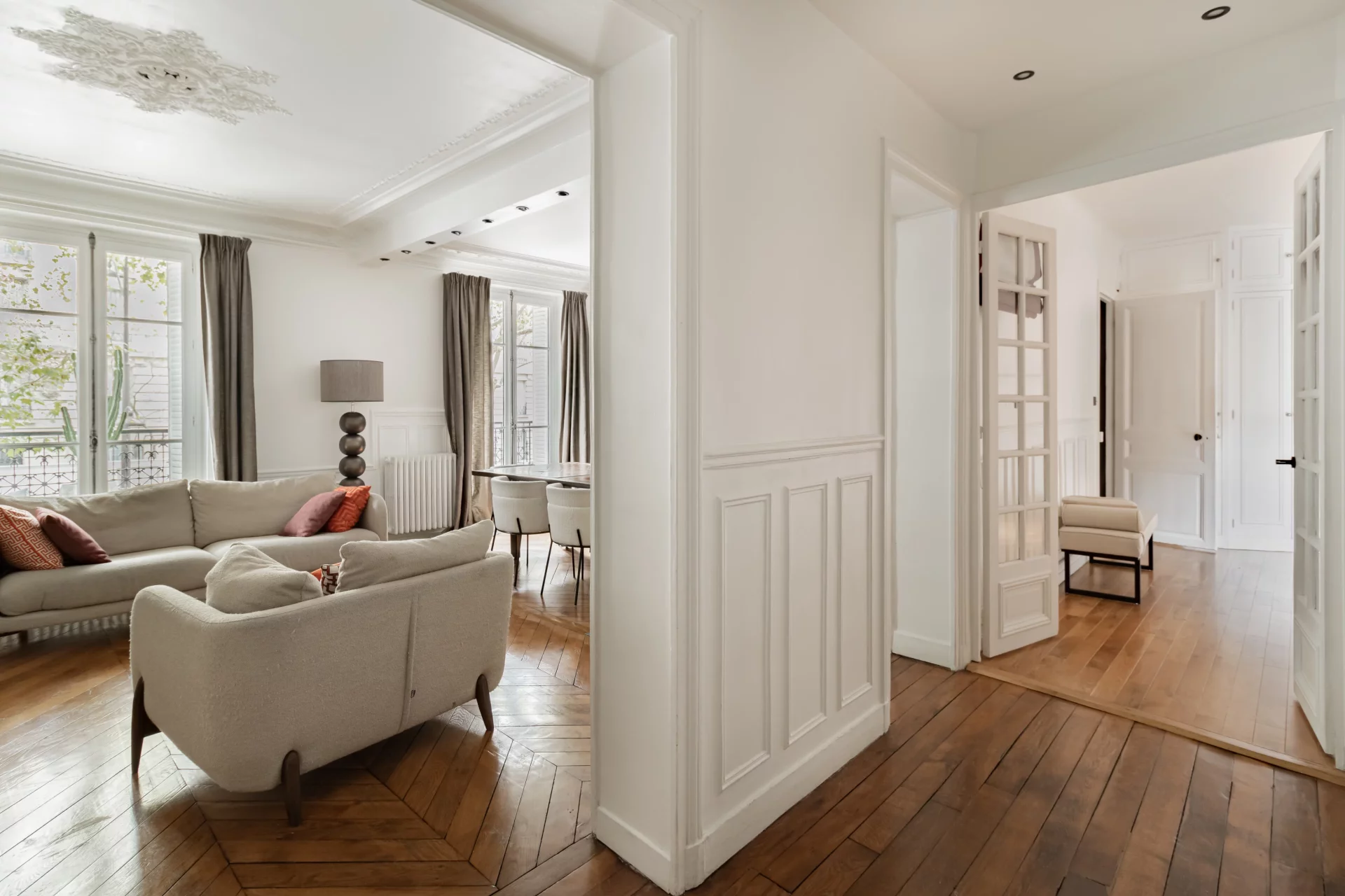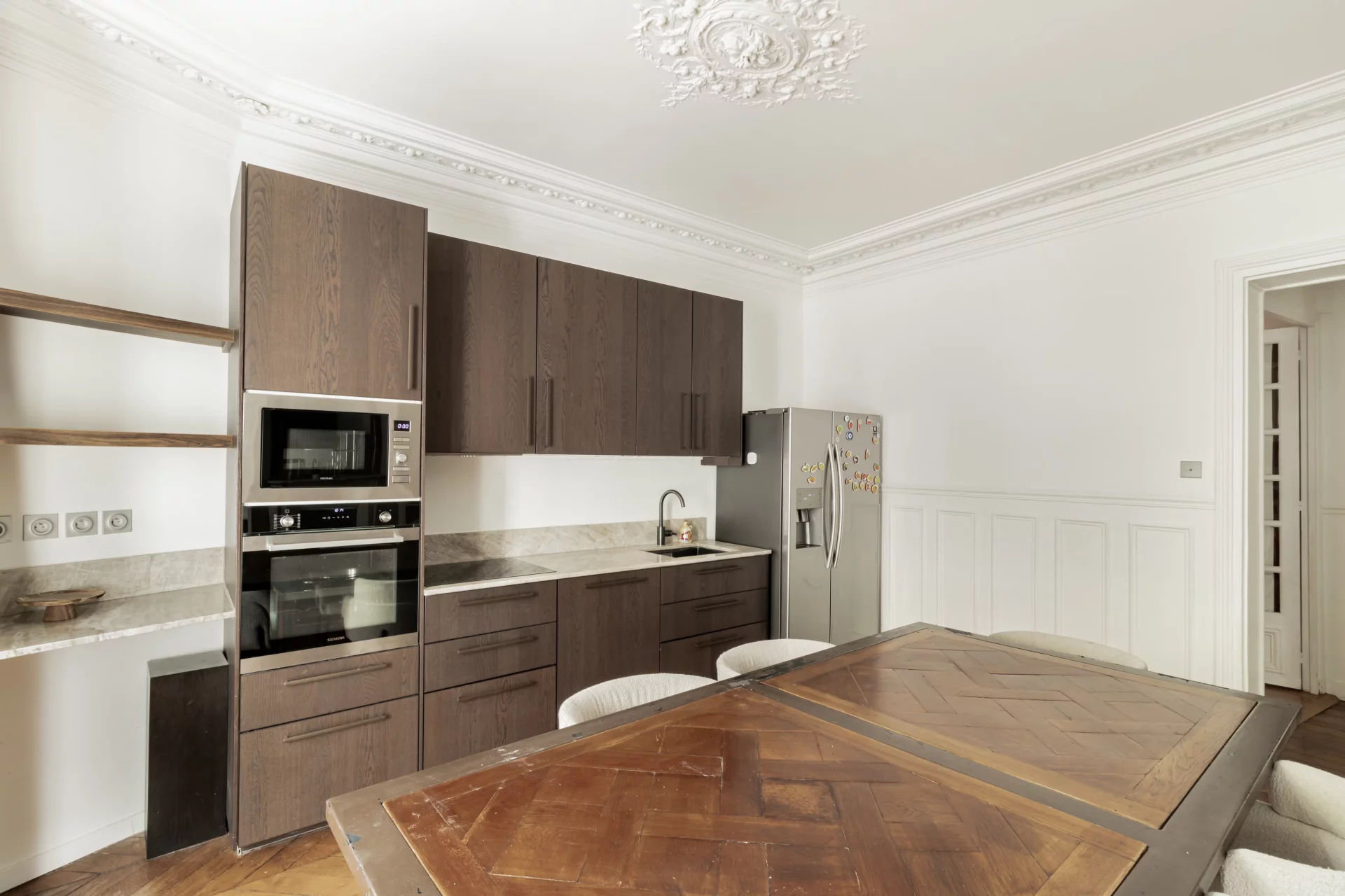 Idéalement situé à quelques pas de la tour Eiffel, de la Rue Cler, des quais de Seine et du Pont de l'Alma, au premier étage par ascenseur d'un très bel immeuble haussmannien sécurisé avec gardien, un appartement de 86,17m² loi Carrez entièrement rénové.