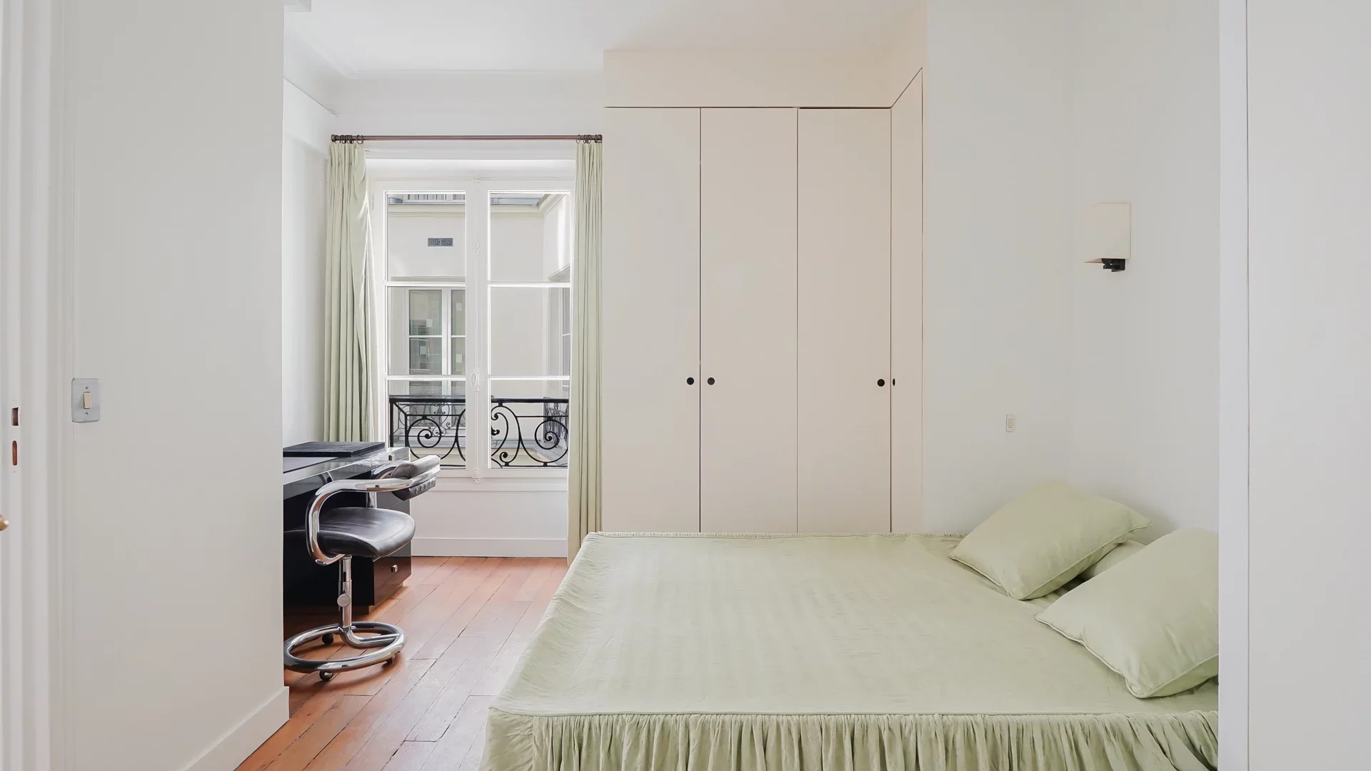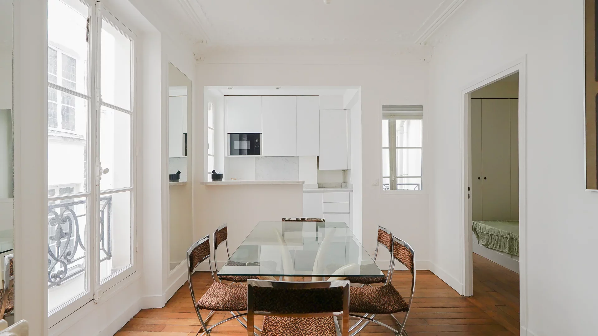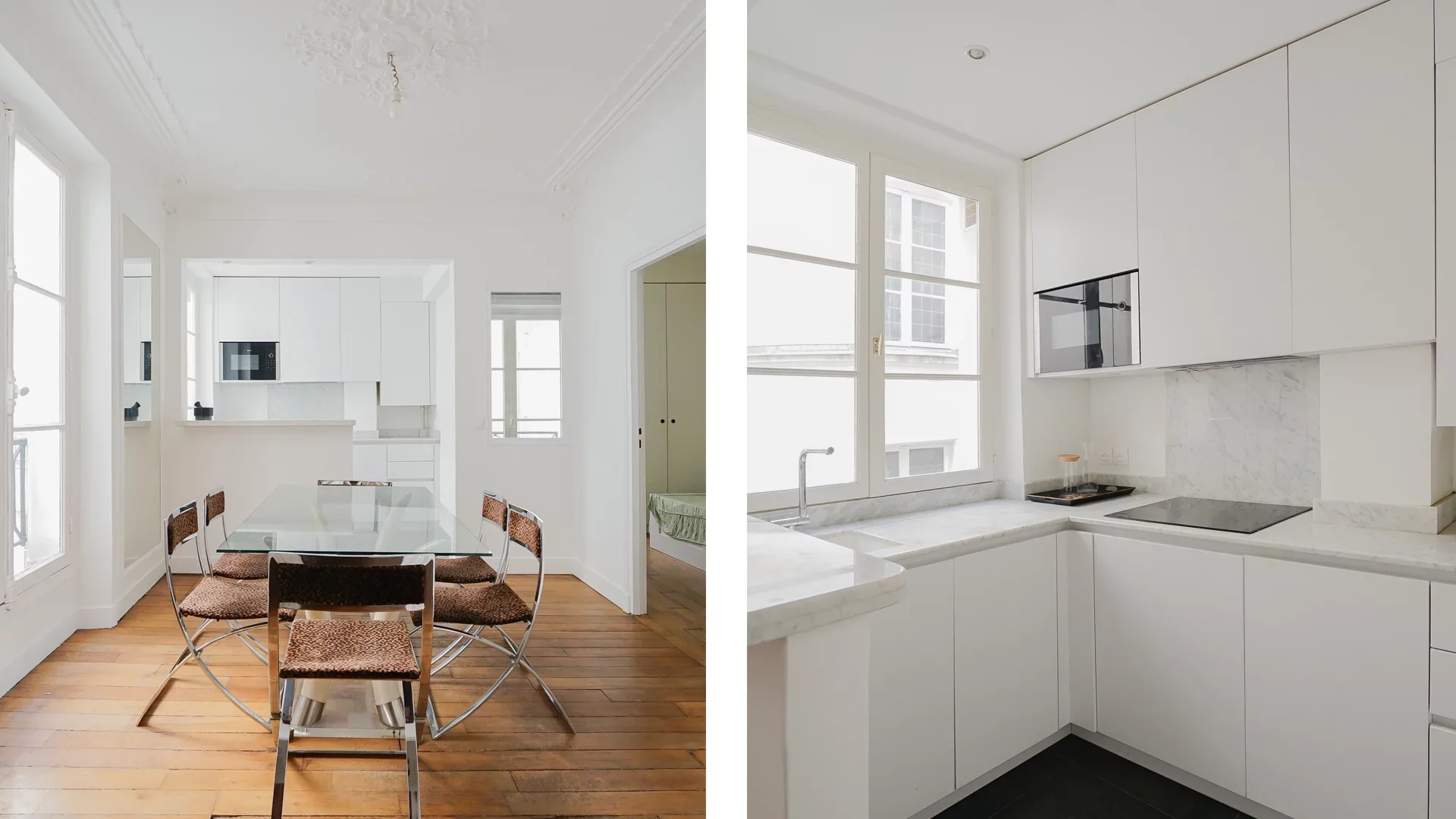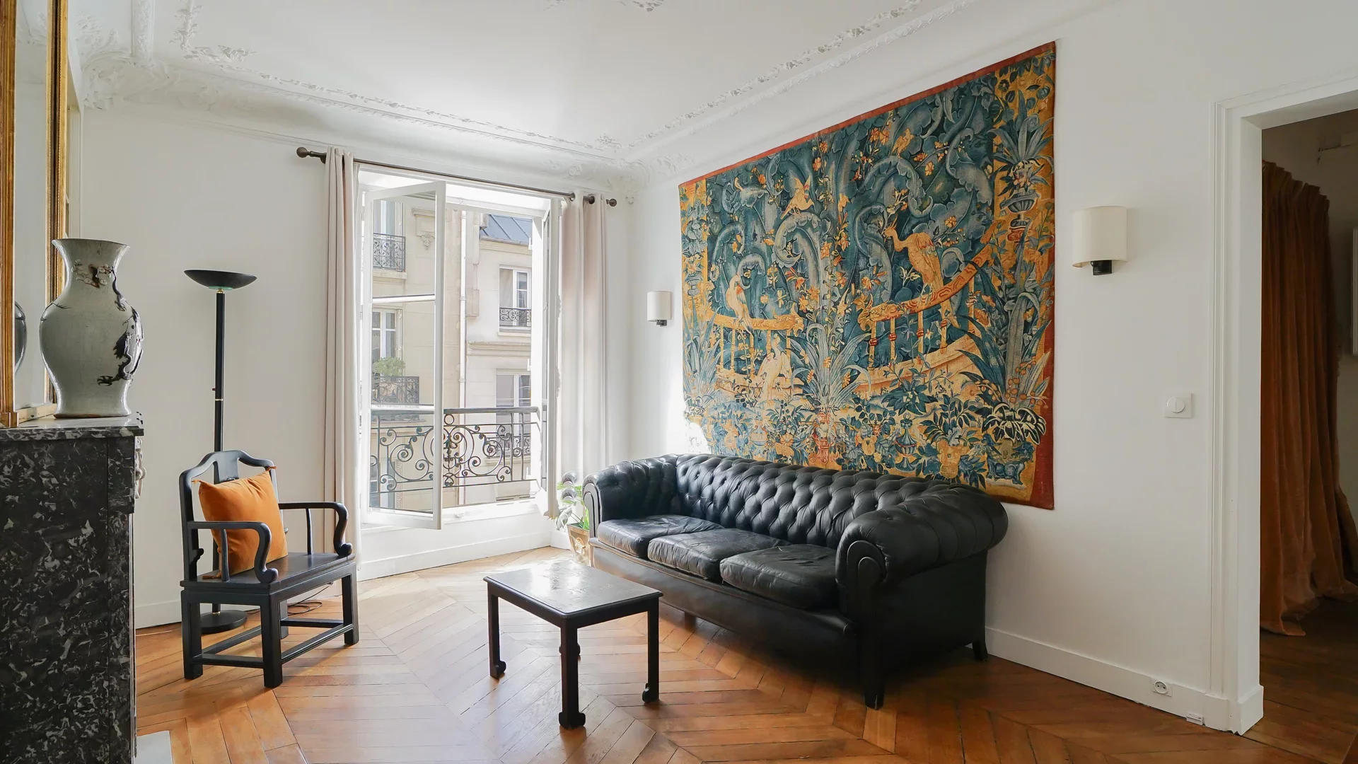 Au cœur du Haut-Marais, au troisième étage d’un bel immeuble ancien, appartement de 55,35m² loi Carrez au charme de l’ancien, sublimé par des rénovations contemporaines.