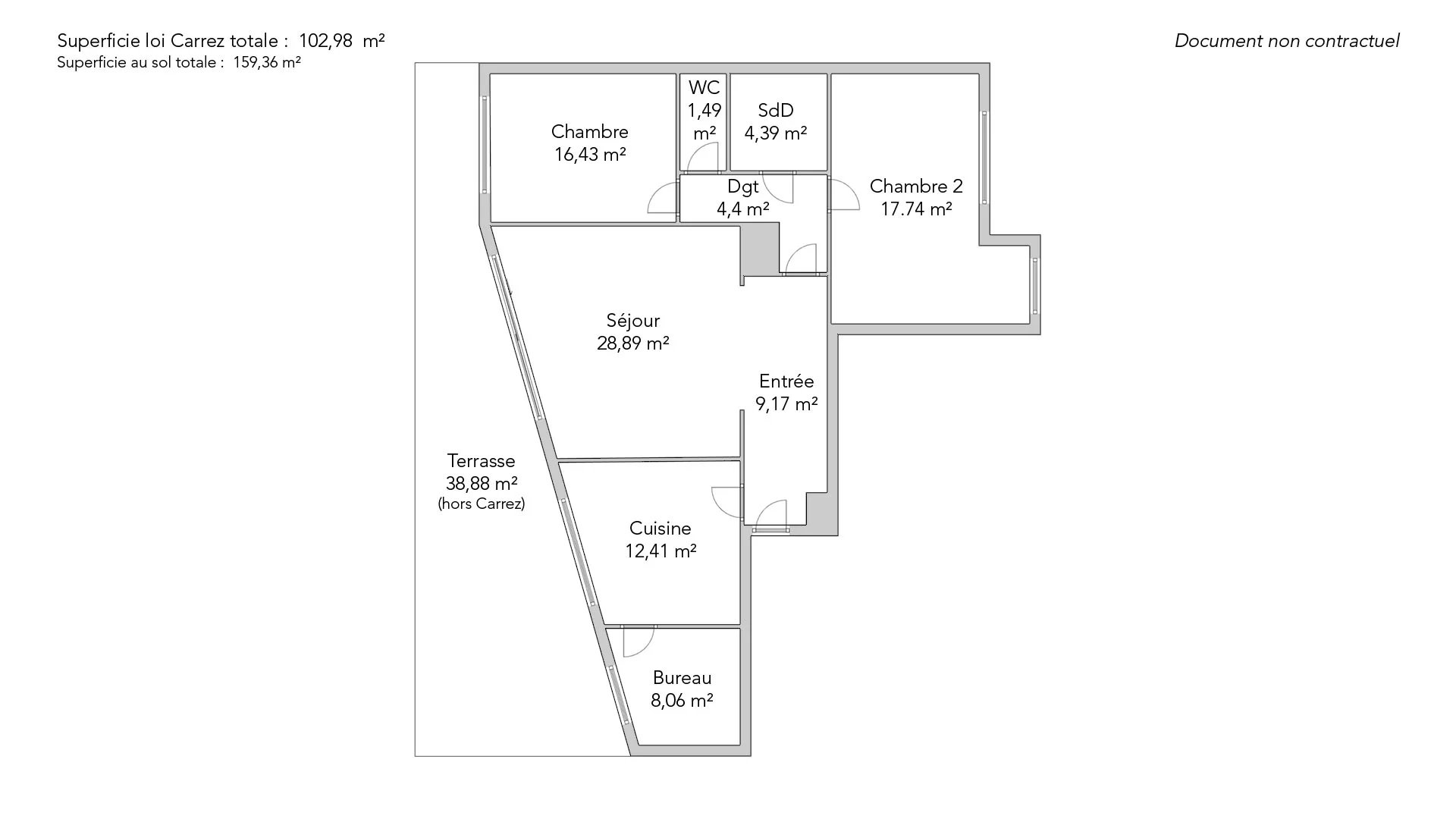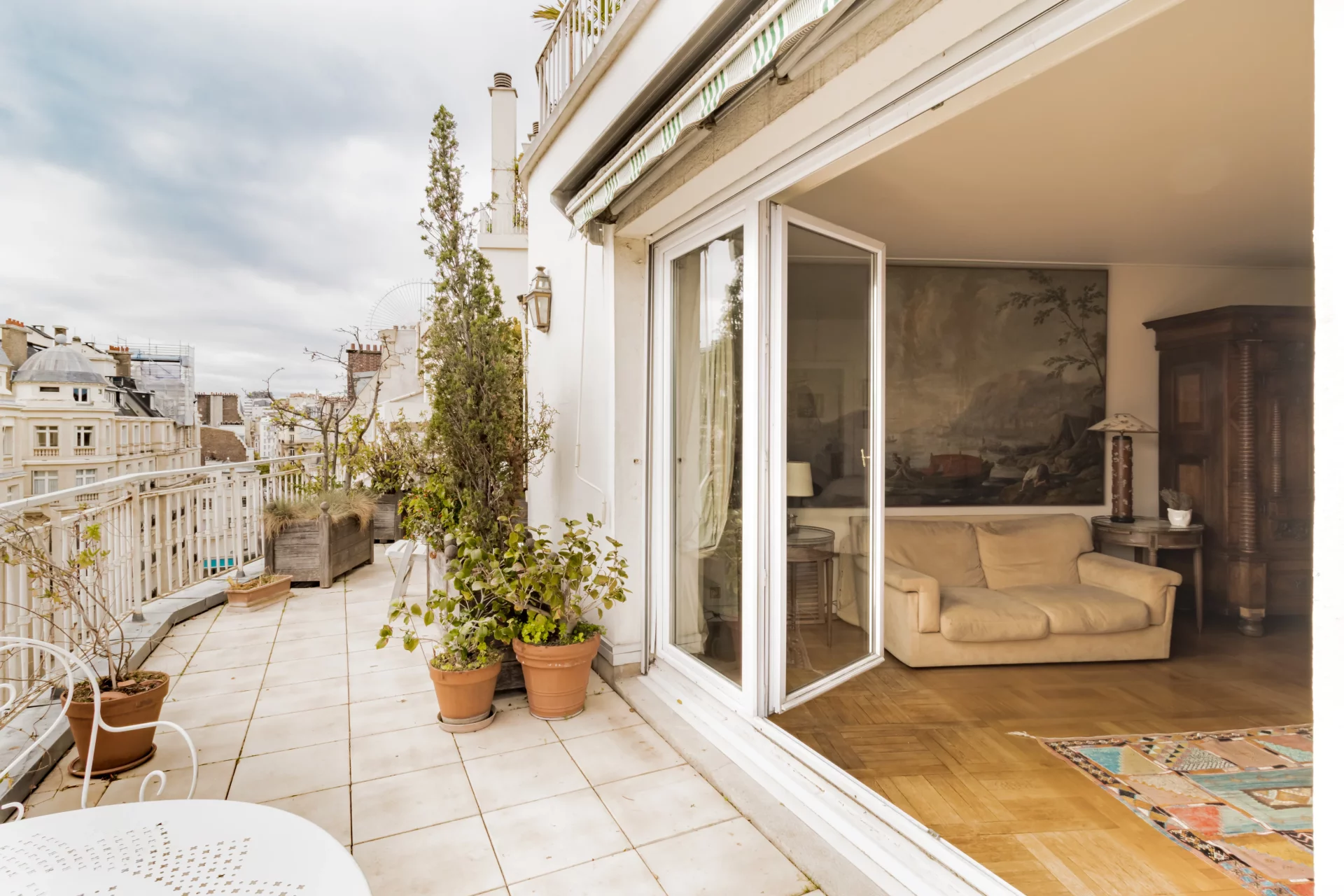Situé dans une résidence de bon standing construite en 1967, le bien de 102,98m² Carrez est au septième et dernier étage par ascenseur. Il bénéficie d’une terrasse de 39m² de plain-pied sur le séjour. Aménagée et végétalisée elle est orientée Est, Sud et Ouest et offre des vues dégagées plein ciel et sans vis à vis.