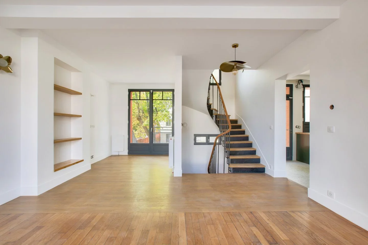 La maison, traversante et lumineuse, a été entièrement rénovée avec des matériaux de grande qualité, tout en conservant le charme de l'ancien avec une très belle hauteur sous-plafond.