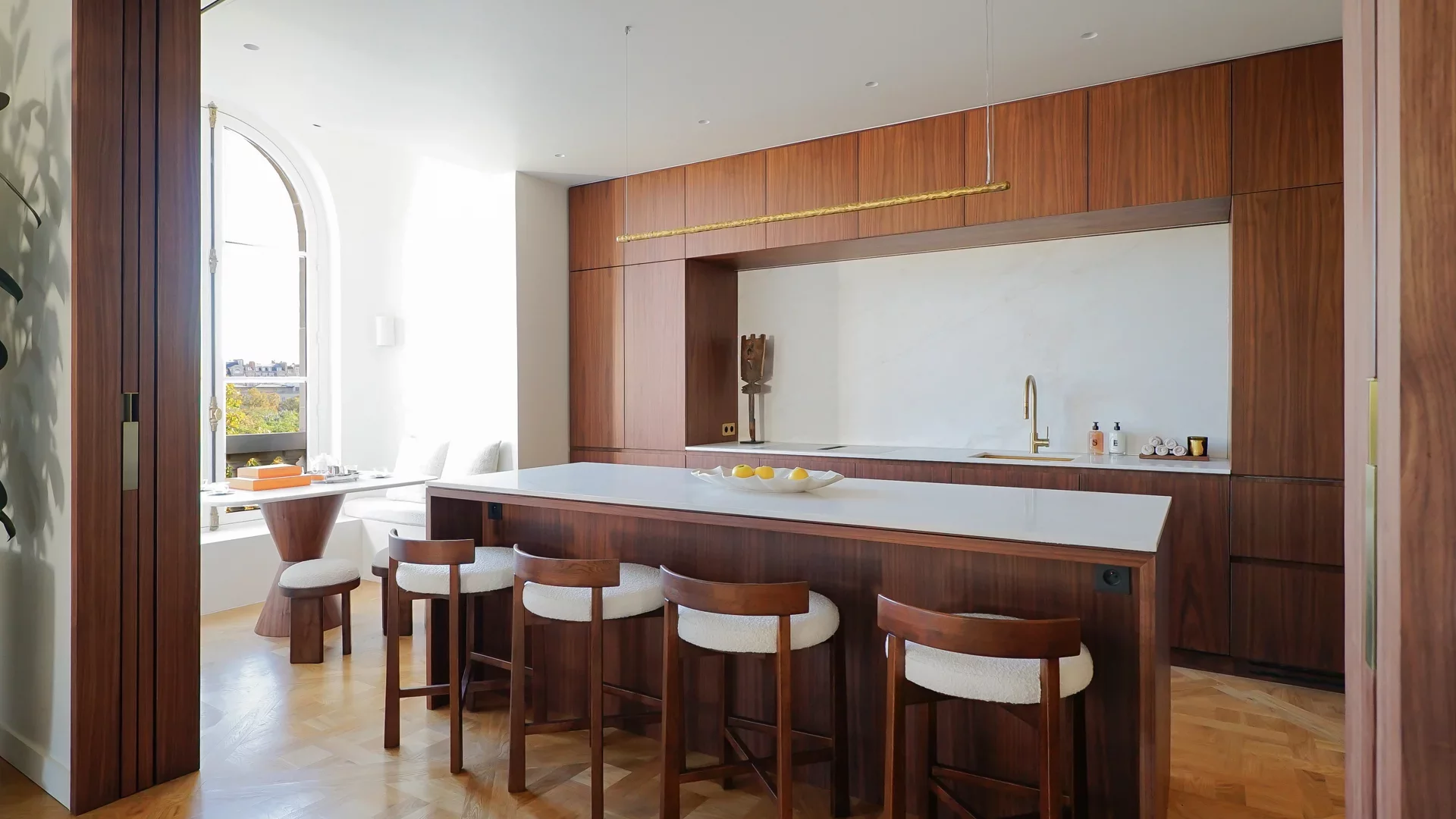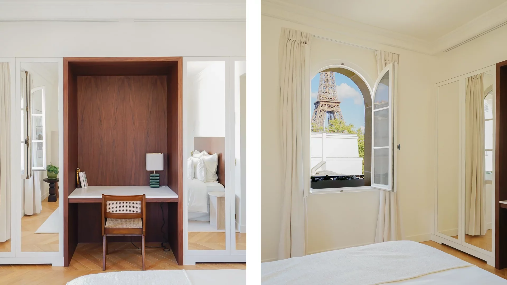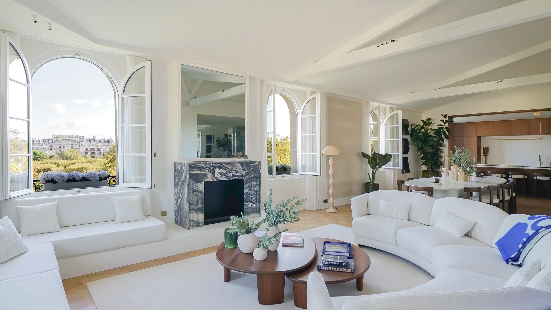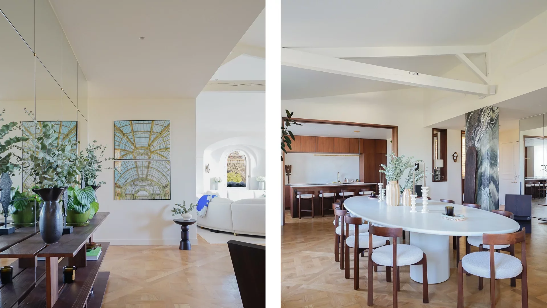 En première ligne du Champ de Mars, cet appartement d'exception bénéficie d'une vue imprenable sur la tour Eiffel et le dôme des Invalides.