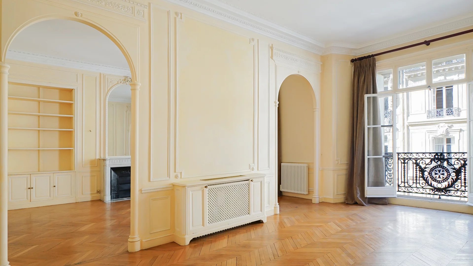 Au deuxième étage d’un élégant immeuble haussmannien par ascenseur avec service de conciergerie, cet appartement de caractère de 155,25m² loi Carrez offre tout le charme de l’ancien: parquet point de Hongrie, moulures, cheminées et belle hauteur sous plafond.