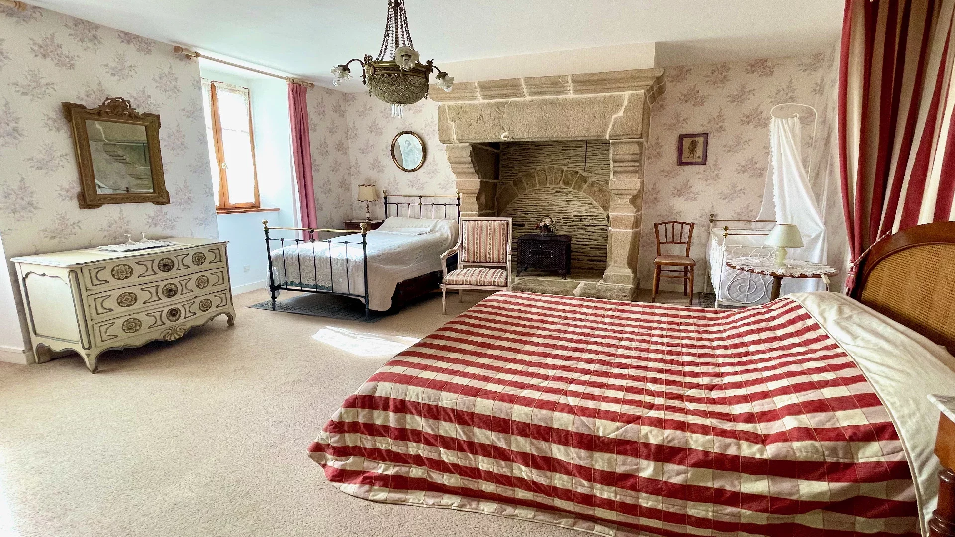 Six chambres avec salles d'eau privatives occupent les étages, complétées par deux chambres supplémentaires pouvant former un espace indépendant, idéal pour une activité professionnelle ou d'accueil. Un lieu chargé d'histoire, préservé dans ses matériaux et son atmosphère.