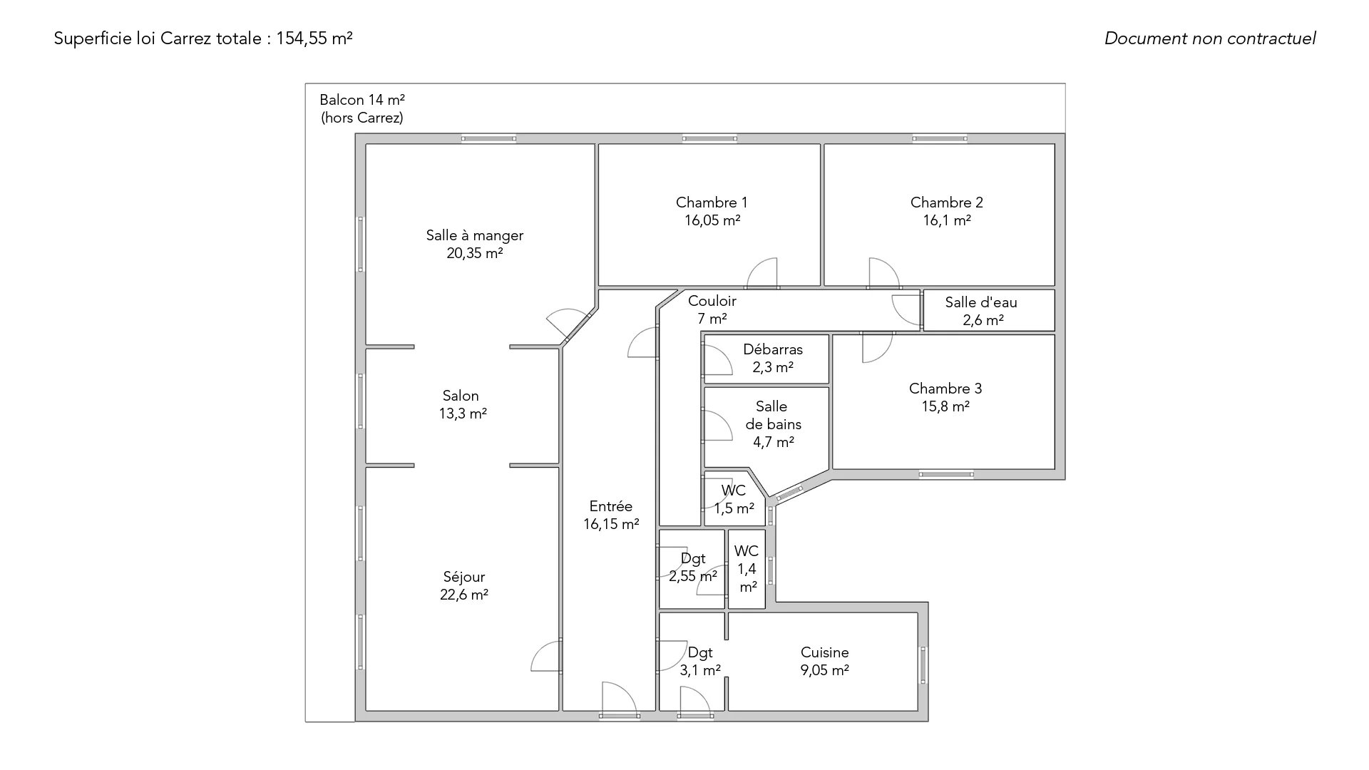 | 1x Couloir | 7 m² | Étage : 2ème |