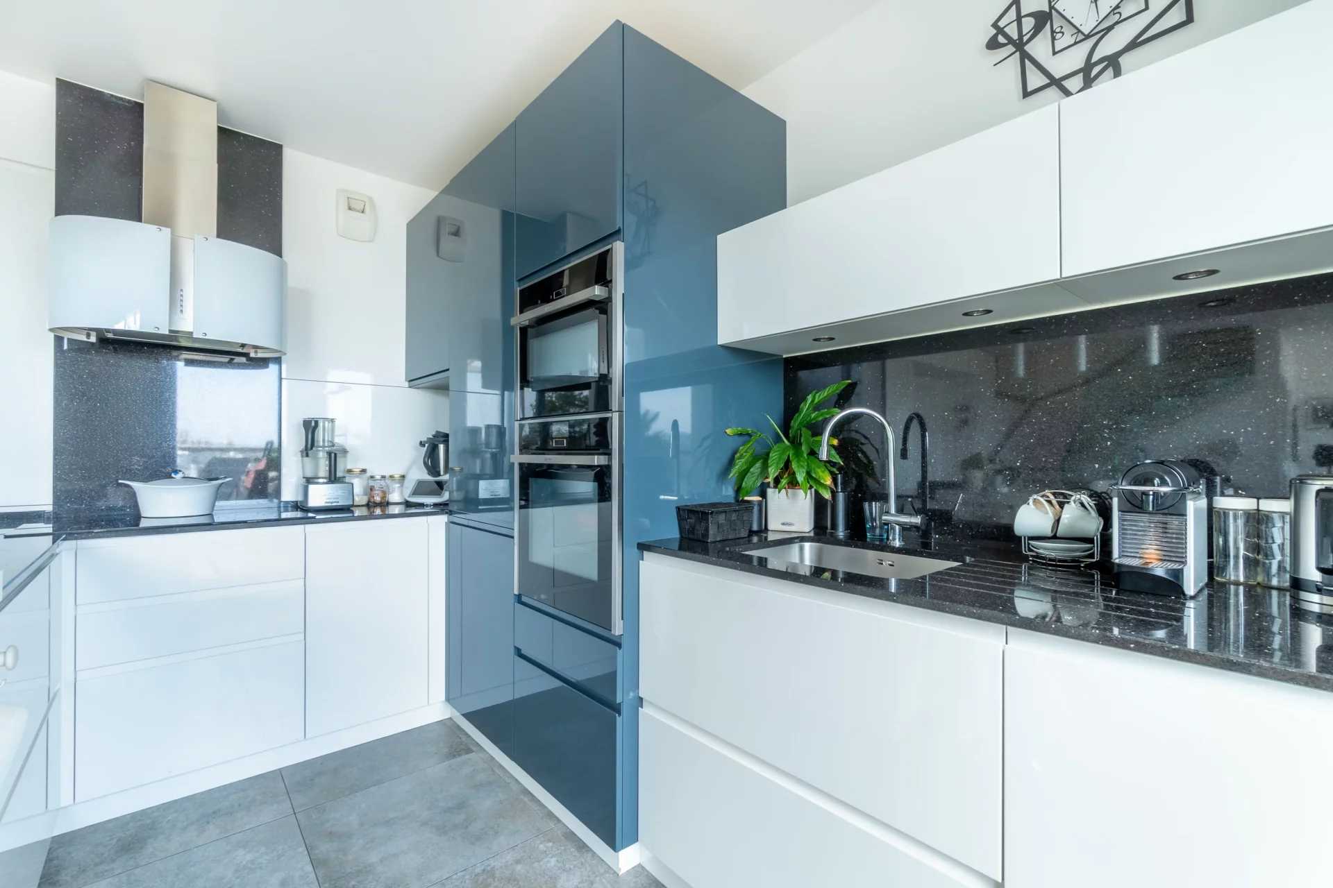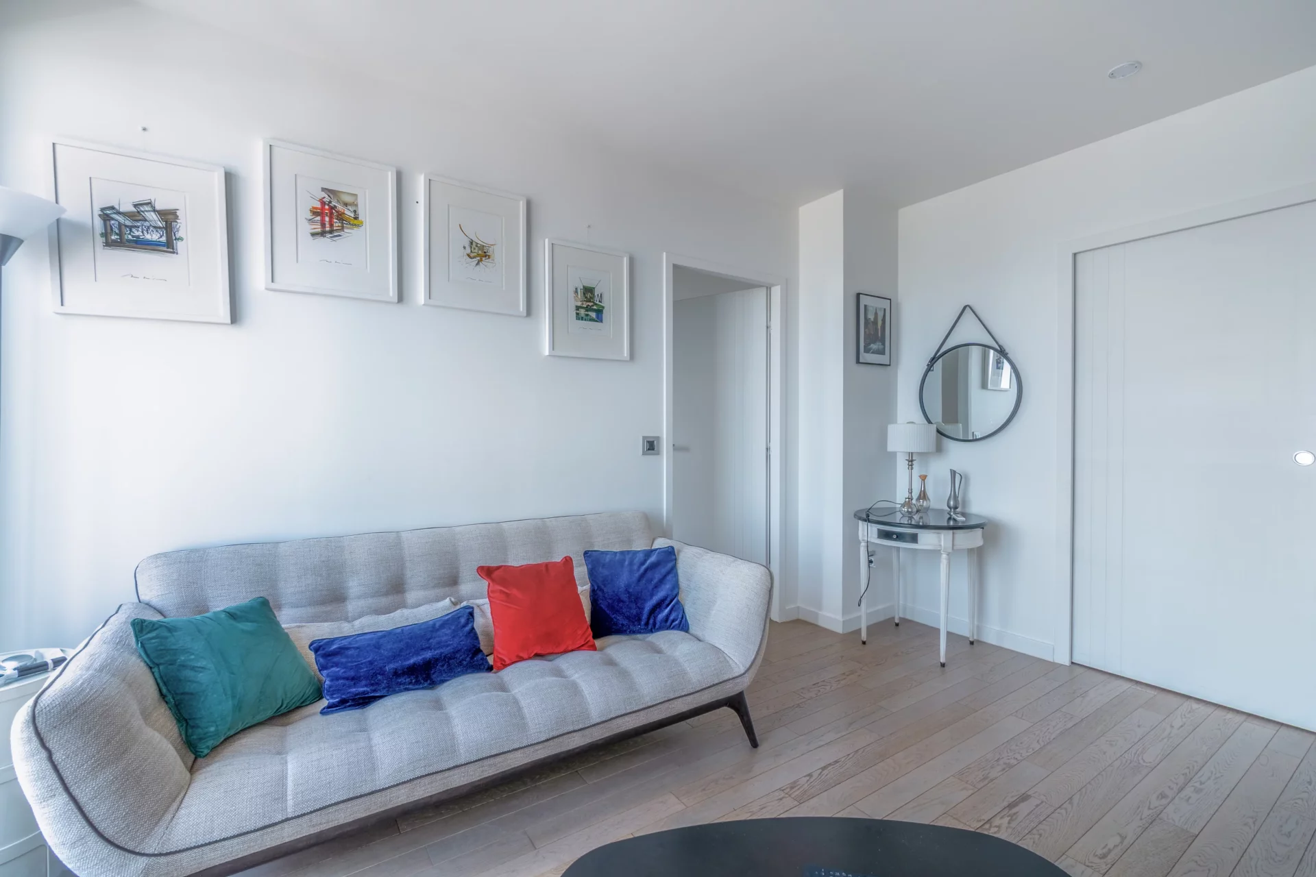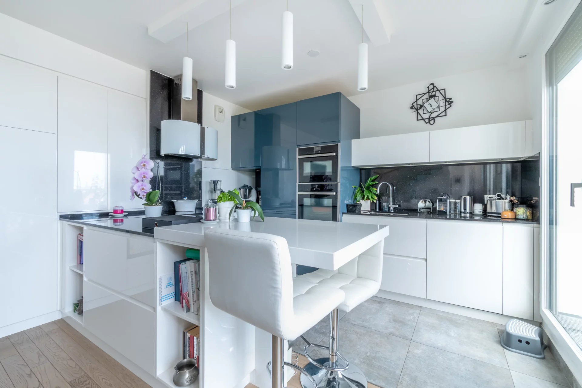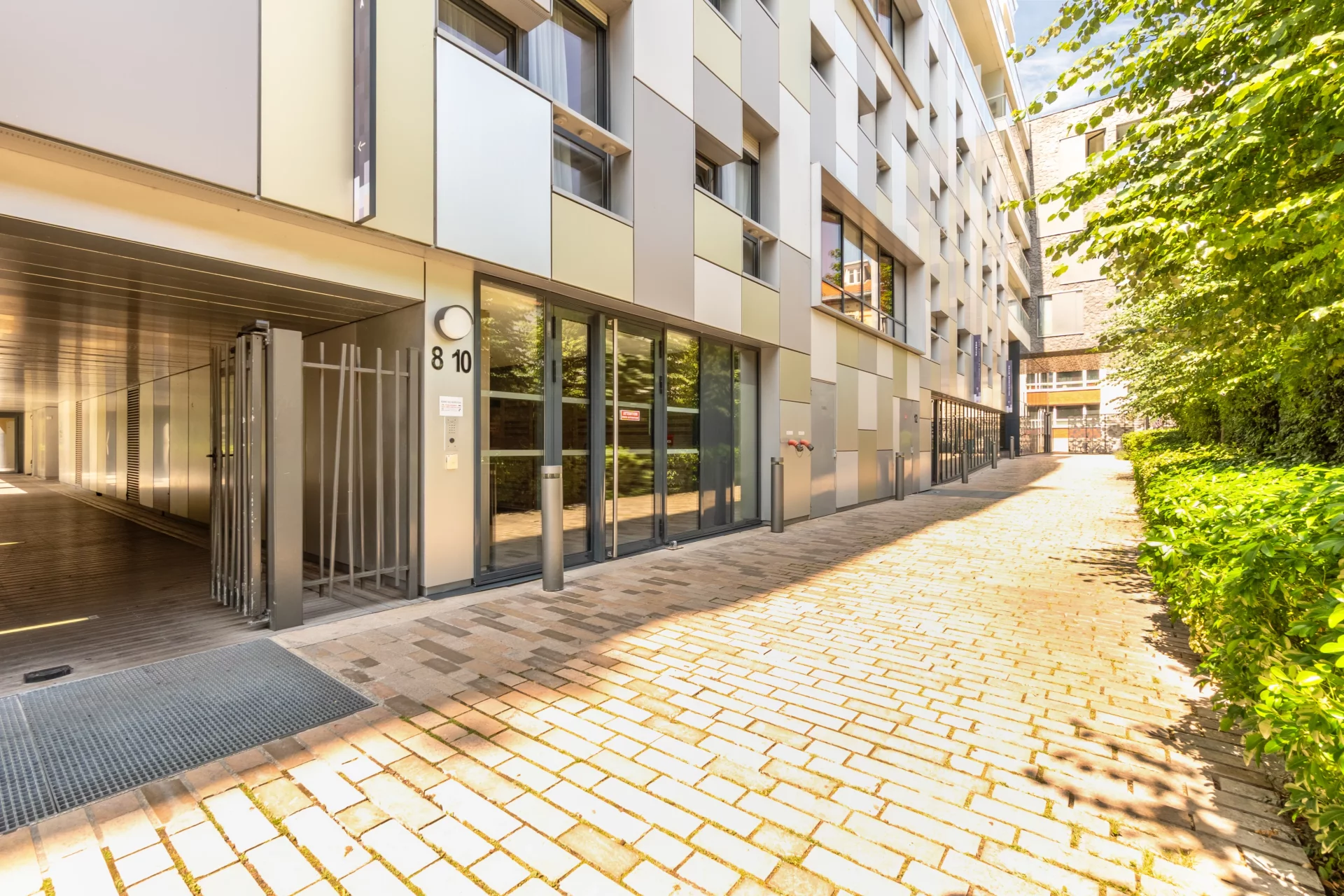Au 8e étage, accessible par un élégant escalier intérieur, se trouve une suite parentale avec salle de bains et dressing. L’ensemble est en parfait état et bénéficie d’une belle luminosité. Un double parking est disponible en supplément.