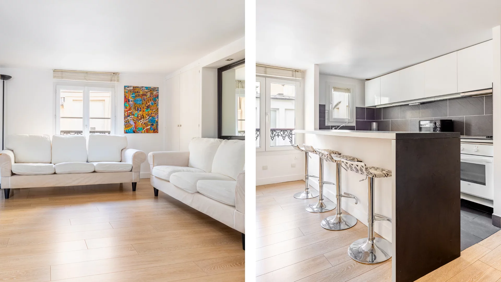 Idéalement situé au cœur du 1er arrondissement, à proximité immédiate de la place Vendôme et du jardin des Tuileries, au 4ᵉ étage d’un bel immeuble ancien, appartement de 53,7m² loi Carrez, en très bon état.