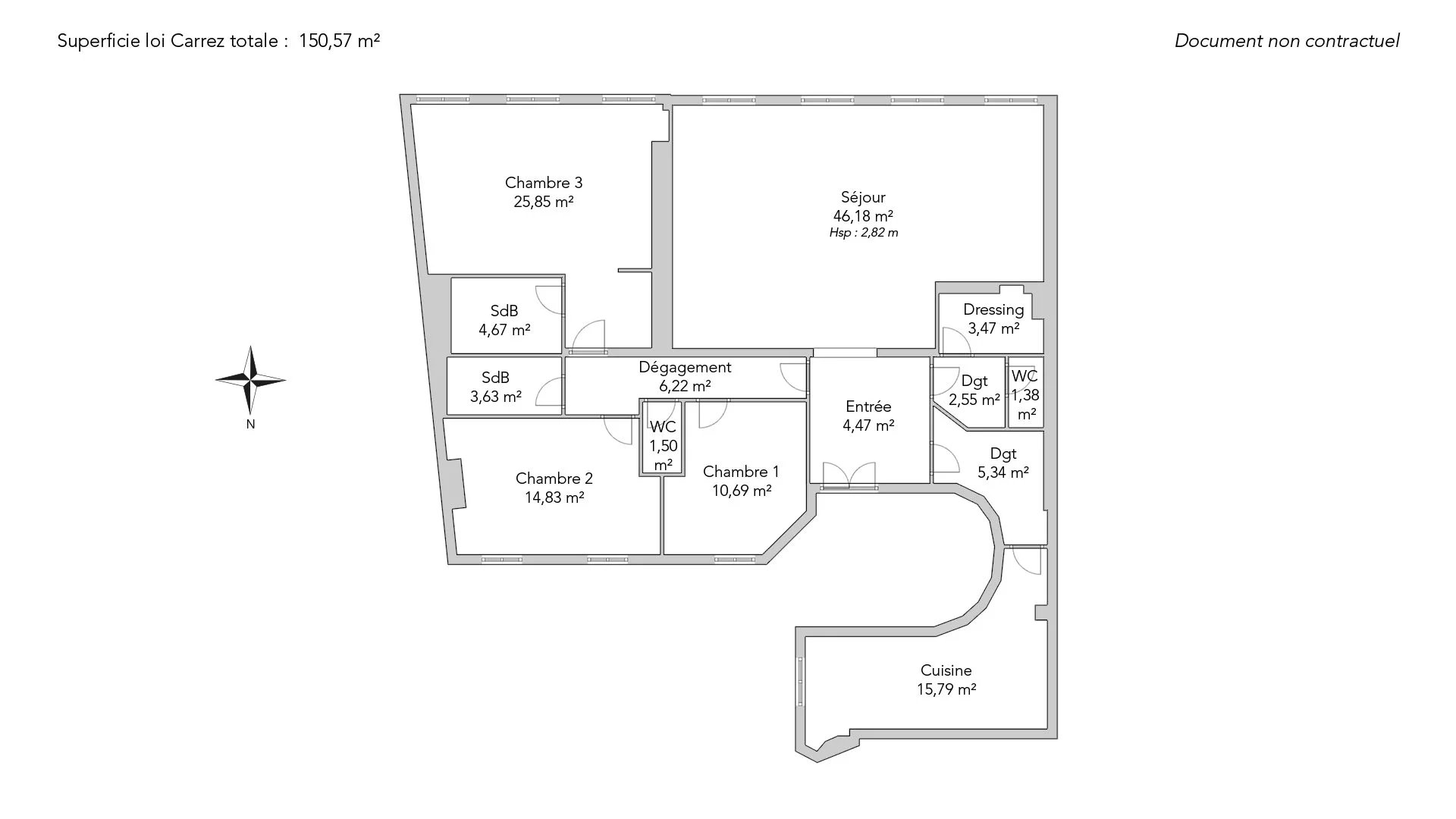 Au cœur du quartier de la Bourse, dans un bel immeuble ancien avec ascenseur, récemment ravalé et parfaitement entretenu, superbe appartement de 150,57 m² loi Carrez offrant de très beaux volumes et une luminosité remarquable grâce à ses 2,80 m de hauteur sous plafond.