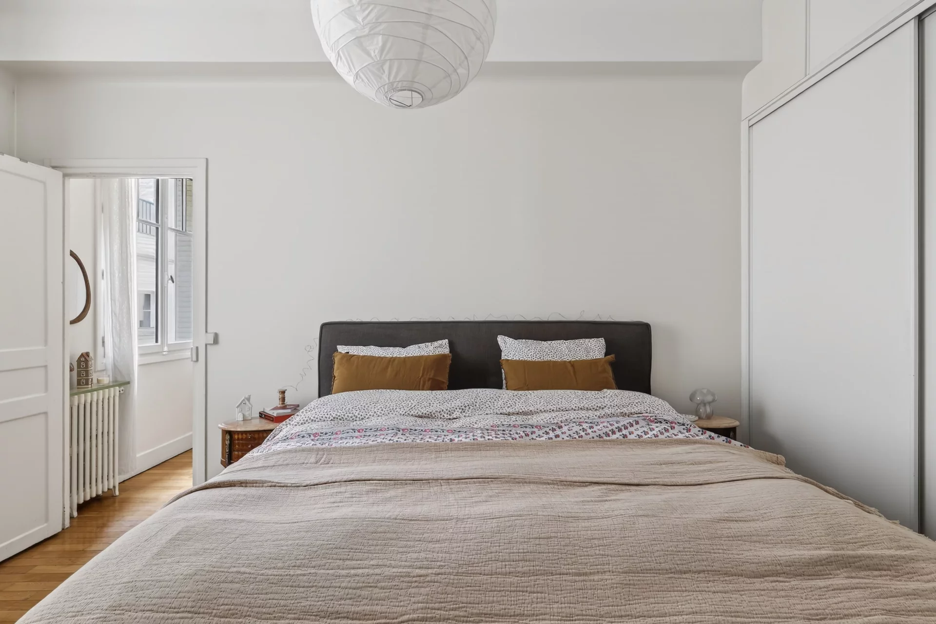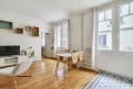 L’appartement a conservé son charme ancien et profite d’une très belle hauteur sous plafond. Il bénéficie d’une exposition est et ses nombreuses et grandes fenêtres donnent sur une rue calme.
