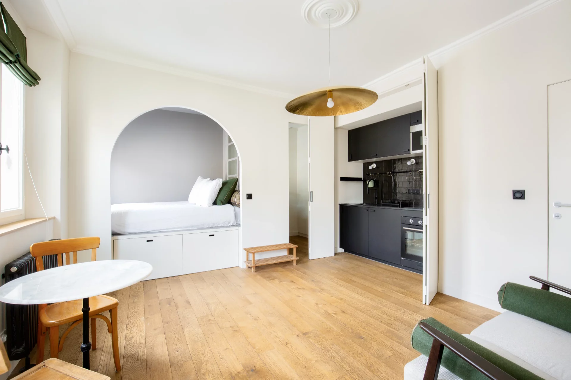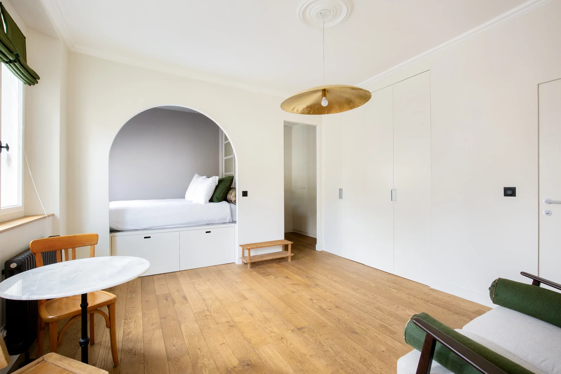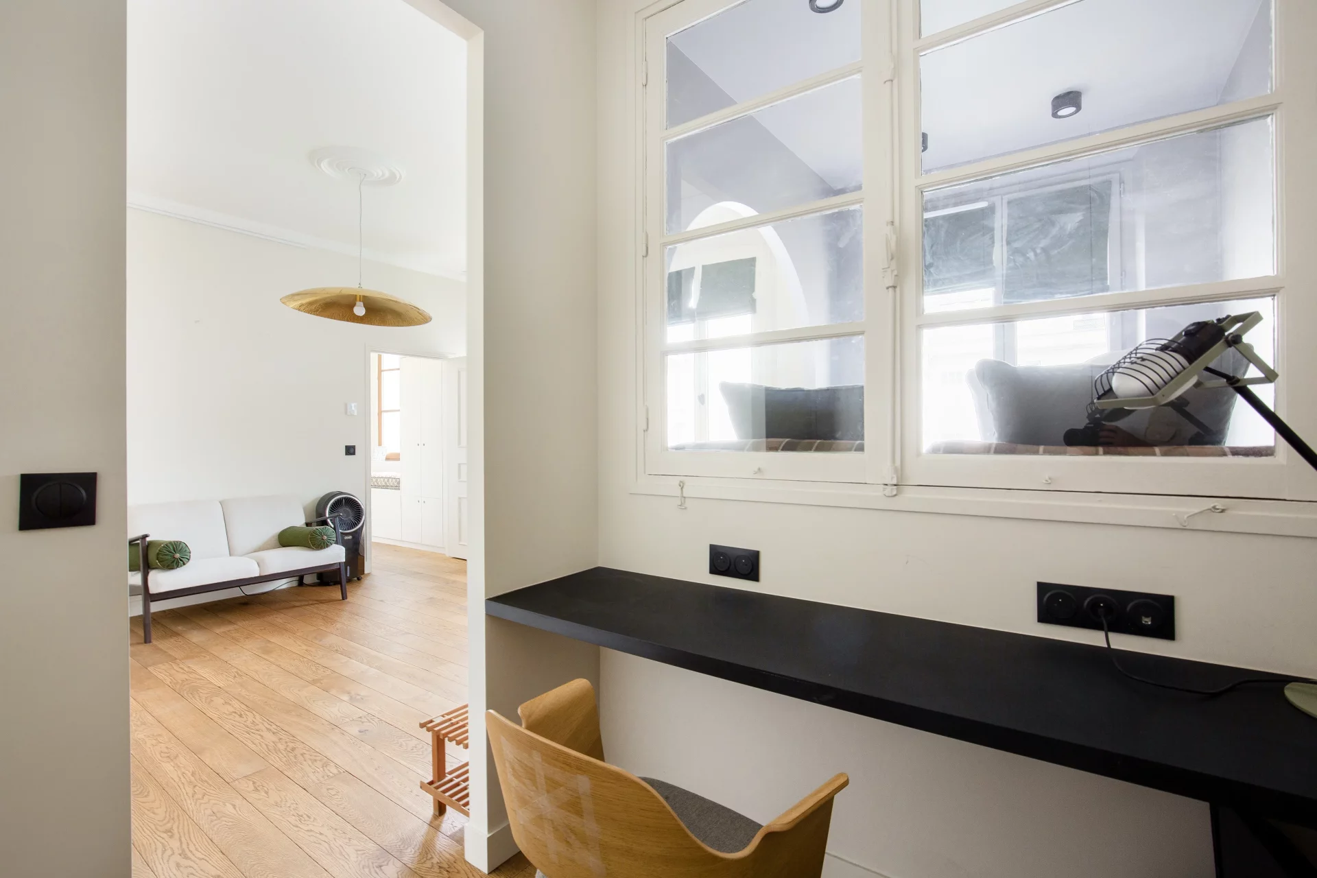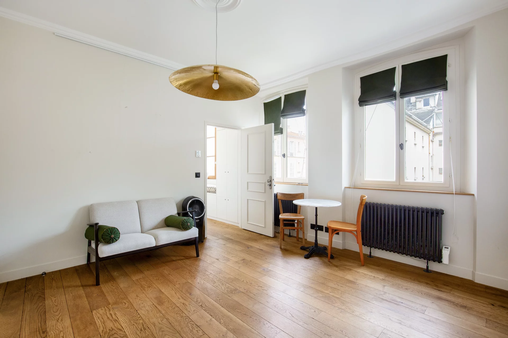 Niché au calme, aux deux derniers étages d’un immeuble de charme.