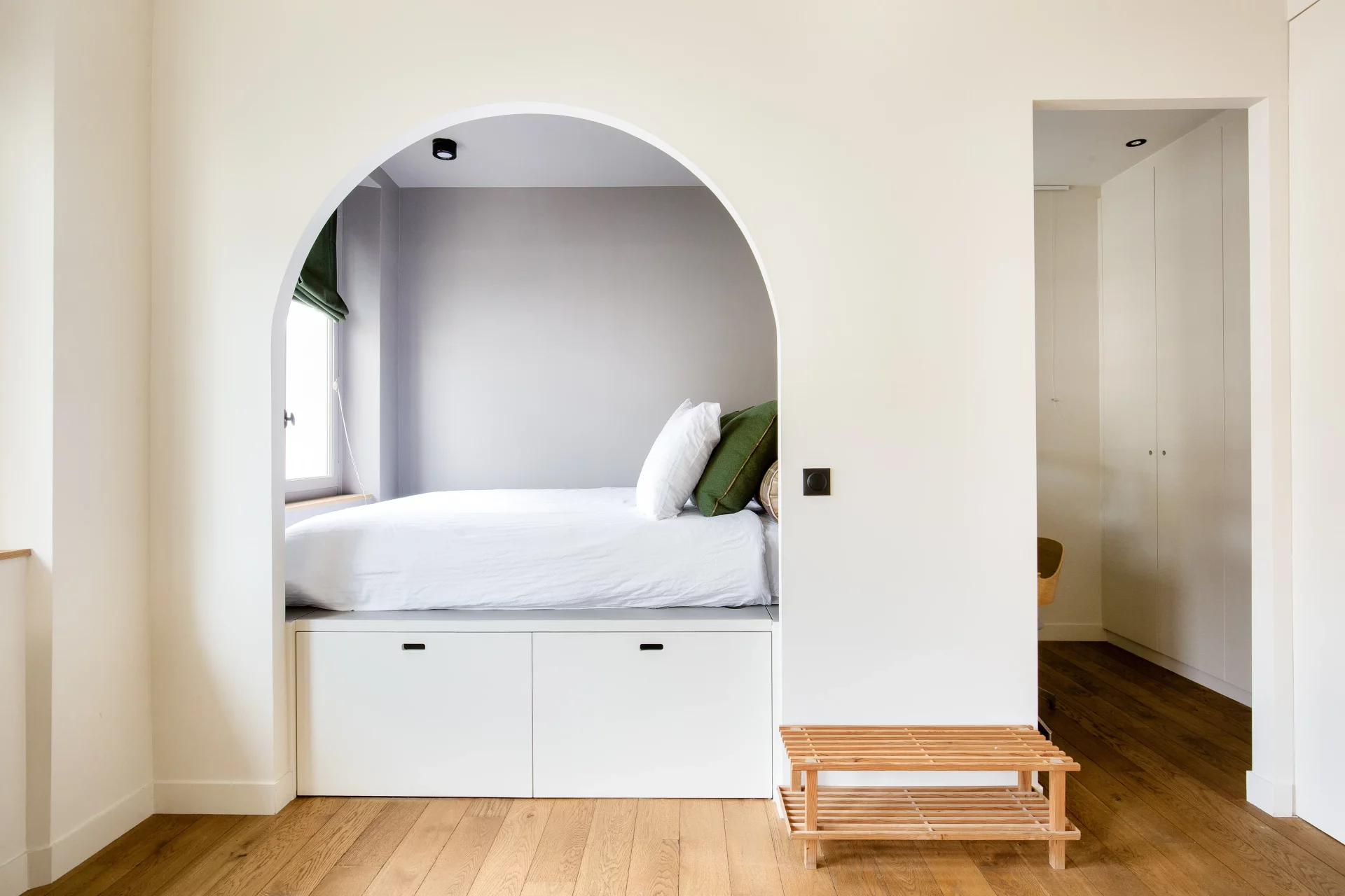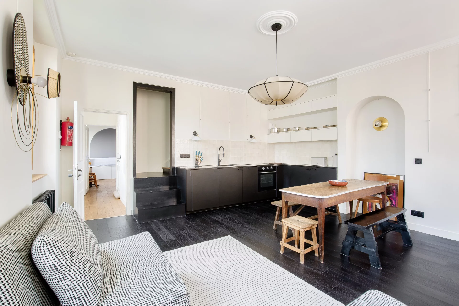 Ce duplex de quatre pièces se distingue par sa modularité et son plan ingénieux, offrant trois pièces d’eau et de multiples configurations possibles.