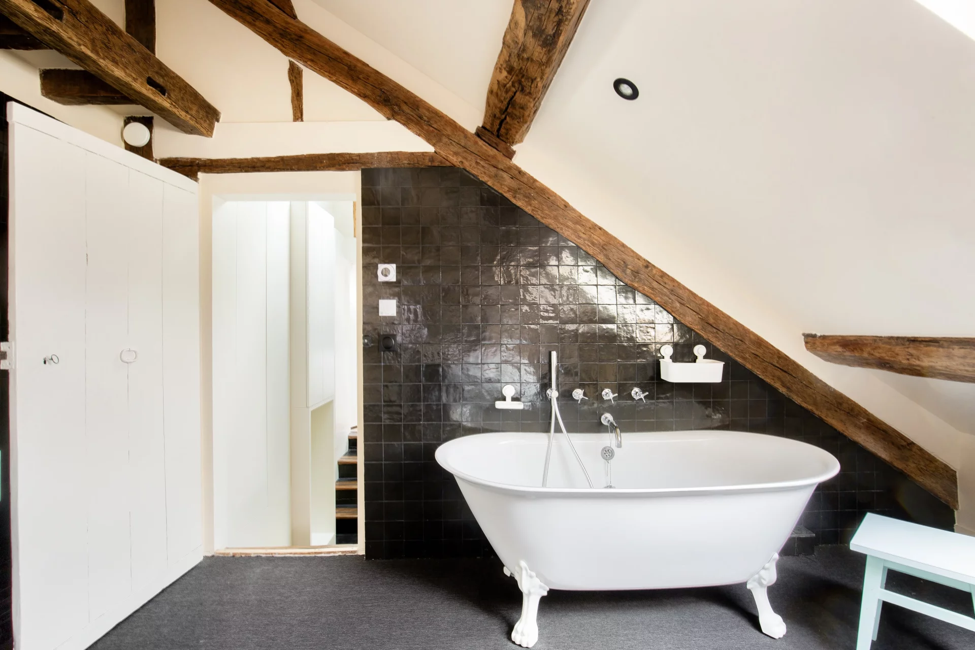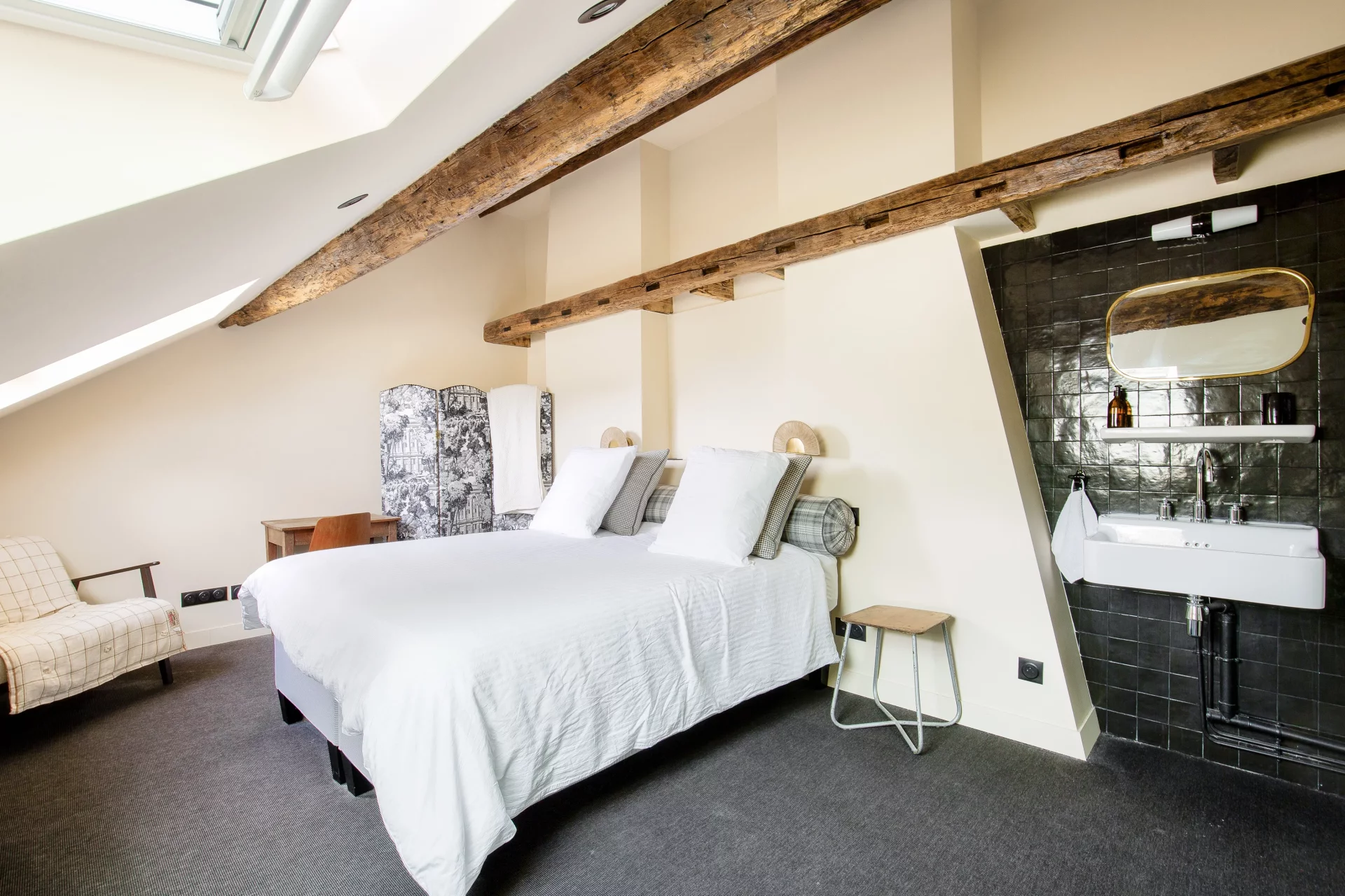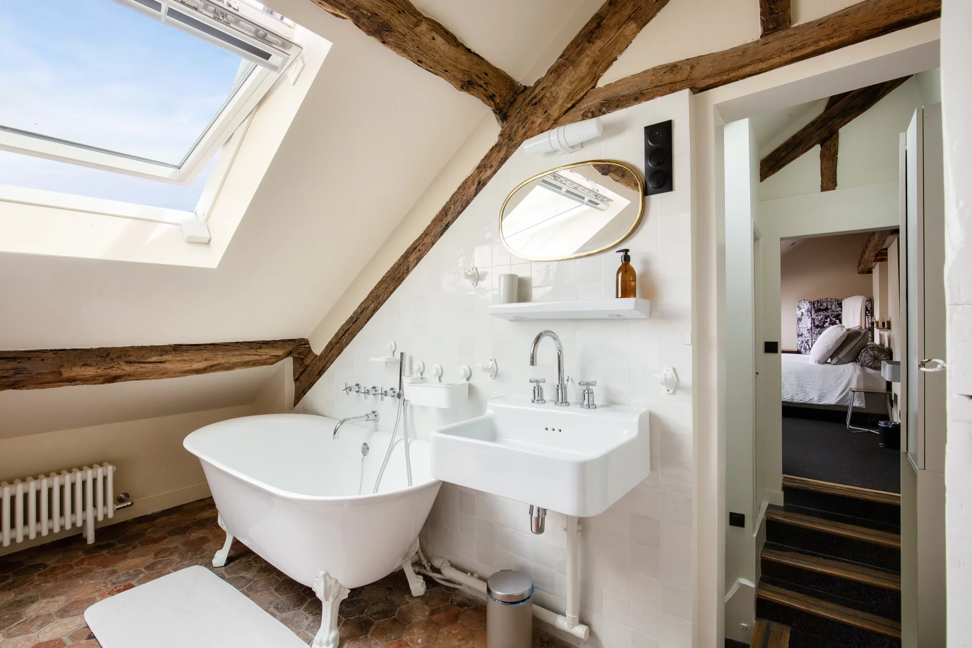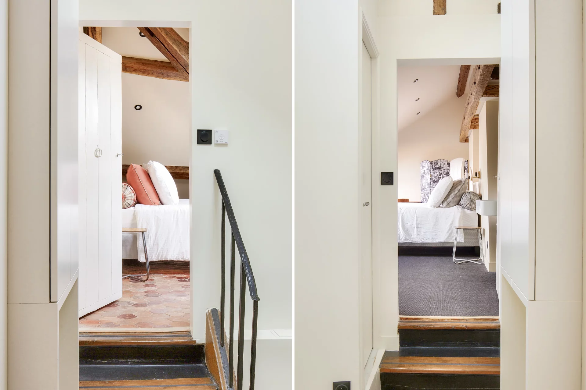 Un élégant escalier conduit au troisième étage, comprenant deux chambres sous mansardes avec poutres apparentes, chacune avec sa salle de bains, ainsi que des toilettes indépendantes avec coin buanderie.