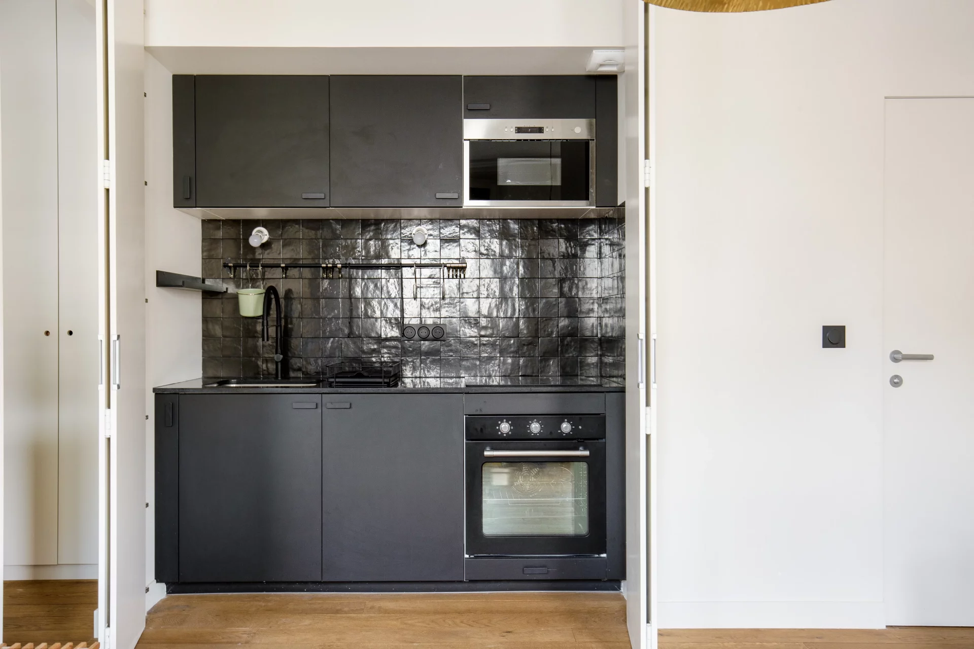 L’entrée dessert à la fois une pièce de vie principale baignée de lumière naturelle, avec cuisine américaine ouverte, et un espace indépendant de près de 30m² pouvant servir soit de studio complet (cuisine, salle de douche, espace nuit et bureau), soit de suite parentale.