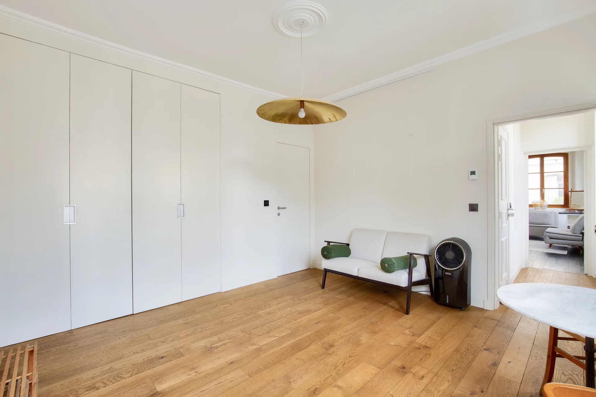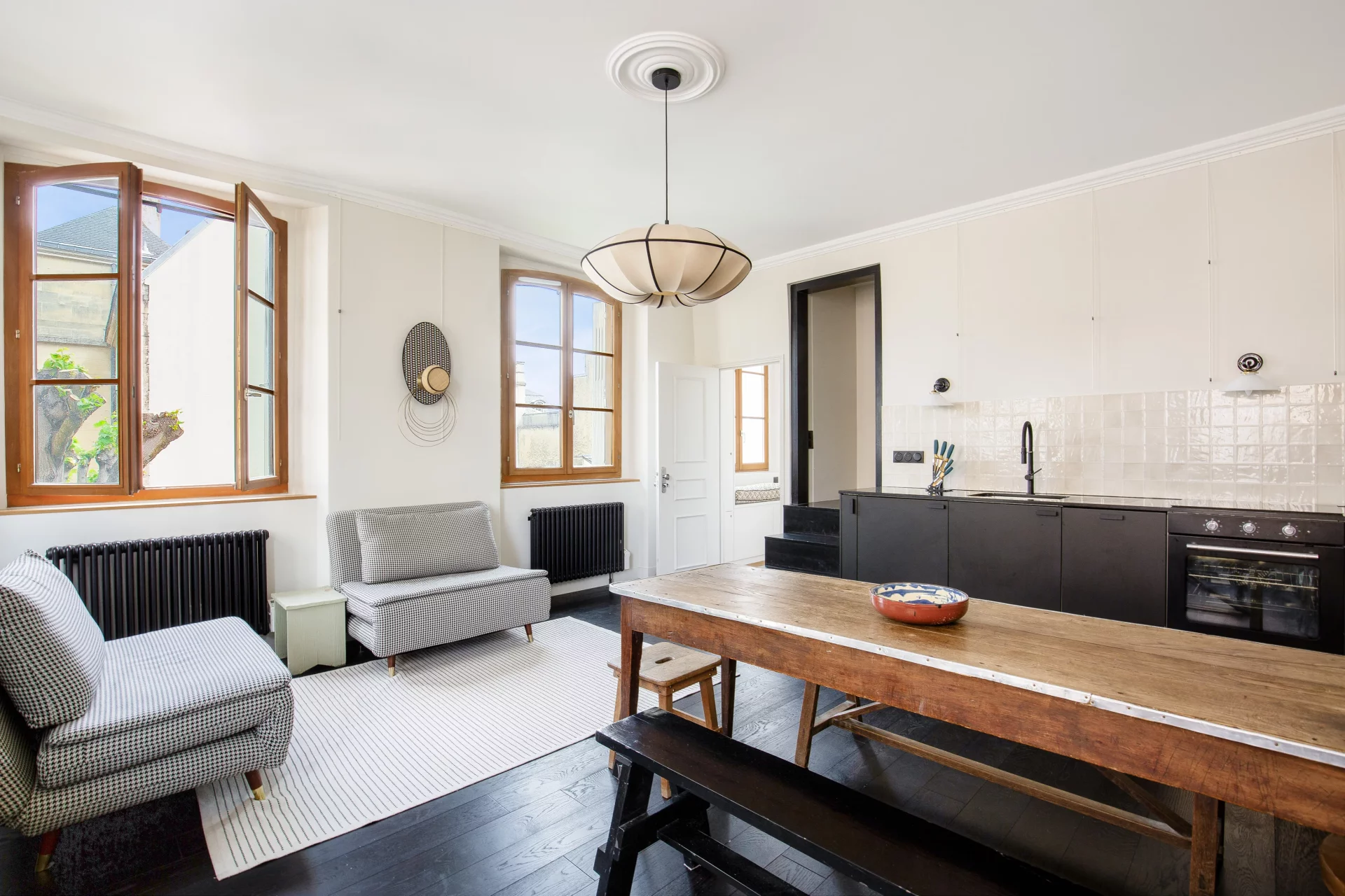 Idéalement situé au cœur du quartier Saint-Louis, l'un ses plus prisés de Versailles, ce superbe duplex de 91,12m² Carrez (118,14m² au sol) a été entièrement restructuré avec un soin particulier et des matériaux de qualité.