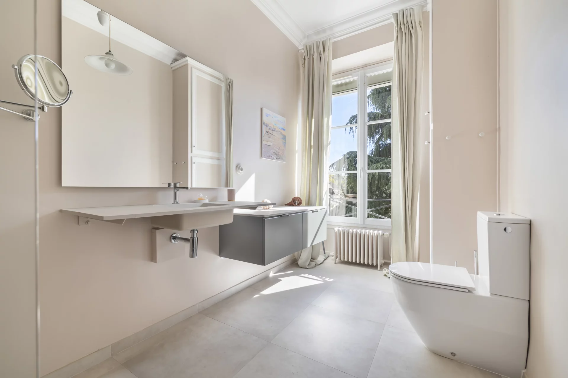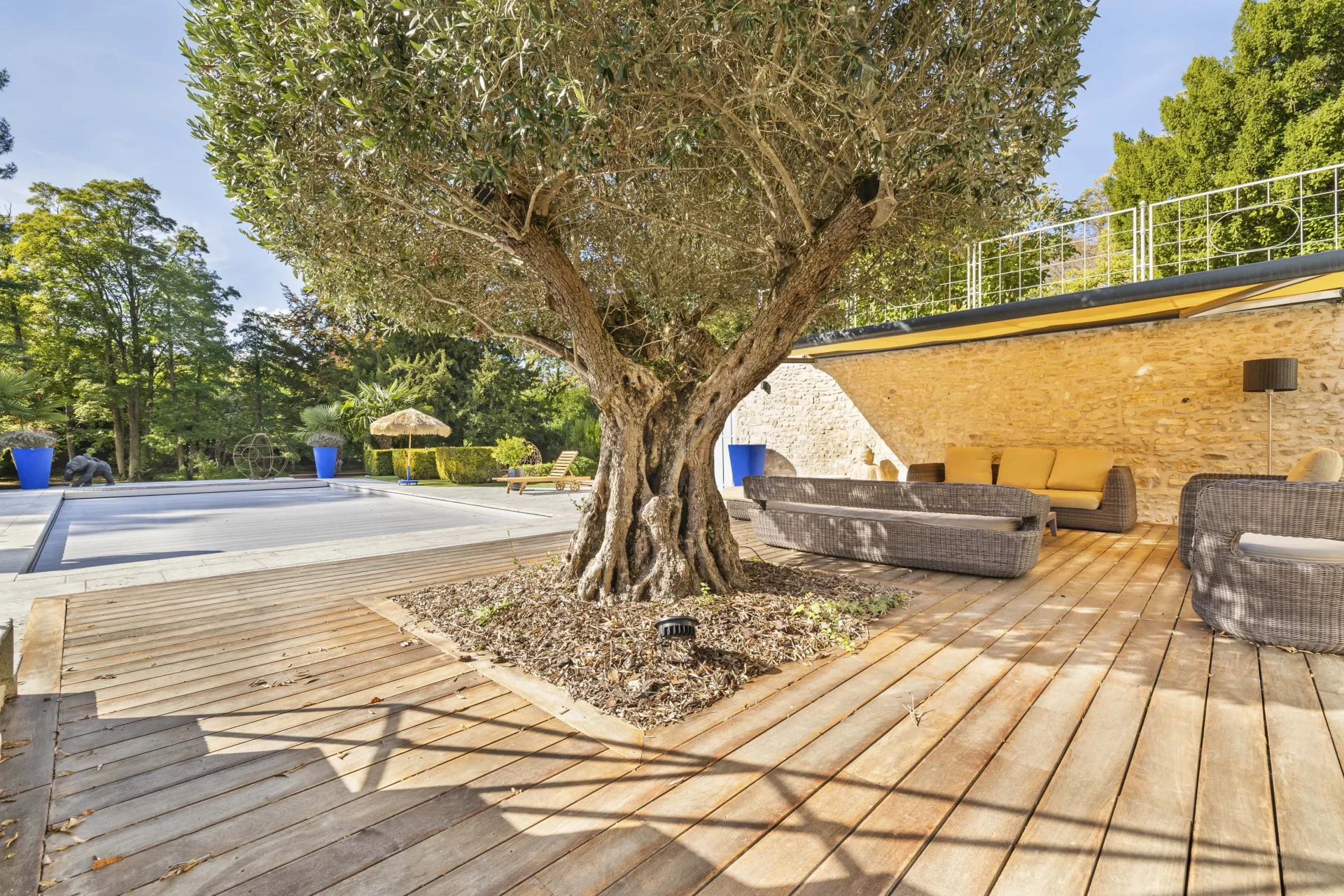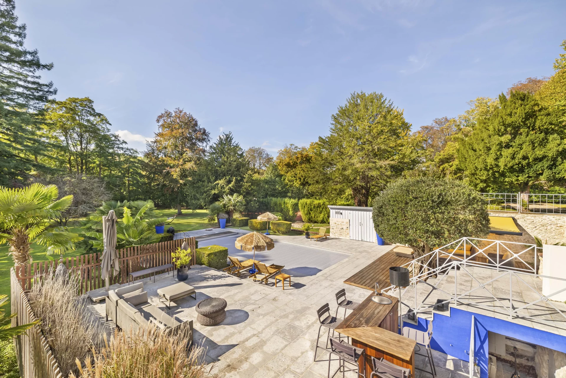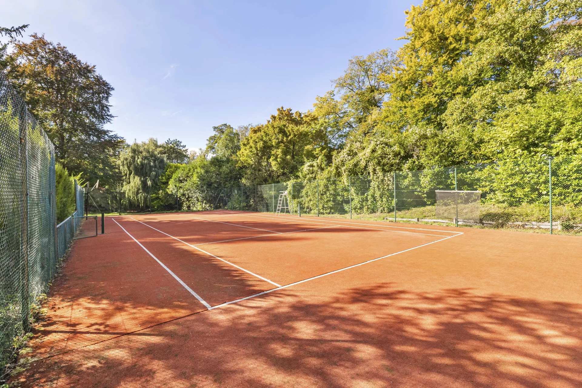 En rez-de-jardin inférieur, un hammam, une salle de sport et une cave à vins prolongent le bien-être du lieu. Le parc, rythmé par son allée de tilleuls, bordé de ses dépendances (anciennes écuries restaurées - garages), ses arbres exceptionnels et ses terrasses baignées de soleil, abrite une piscine et un court de tennis. L’ensemble dégage une sérénité rare, où tout semble à sa place. Une propriété élégante et singulière, à la fois ancrée dans la nature et ouverte sur la lumière.