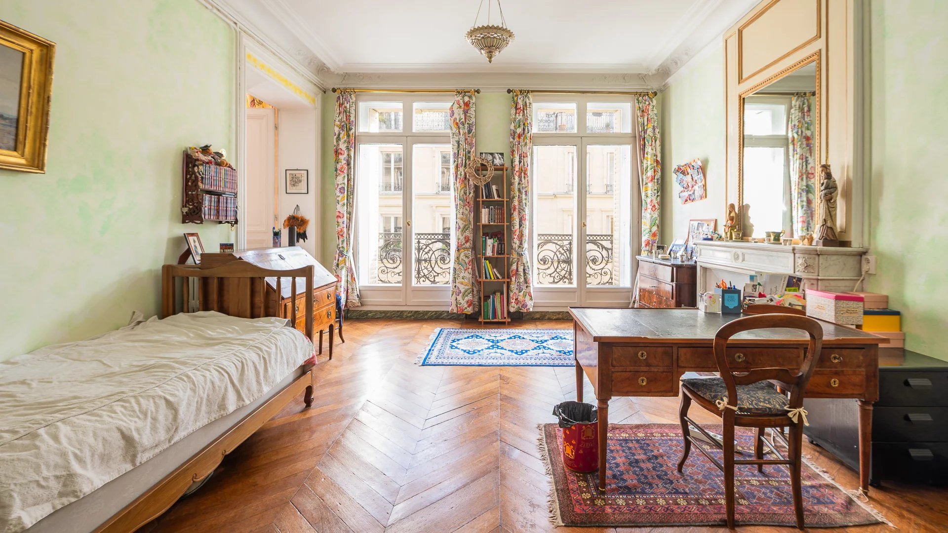 Le charme de l’ancien est omniprésent, avec des éléments architecturaux soigneusement préservés tels que le parquet en point de Hongrie, les moulures raffinées et les cheminées élégantes.