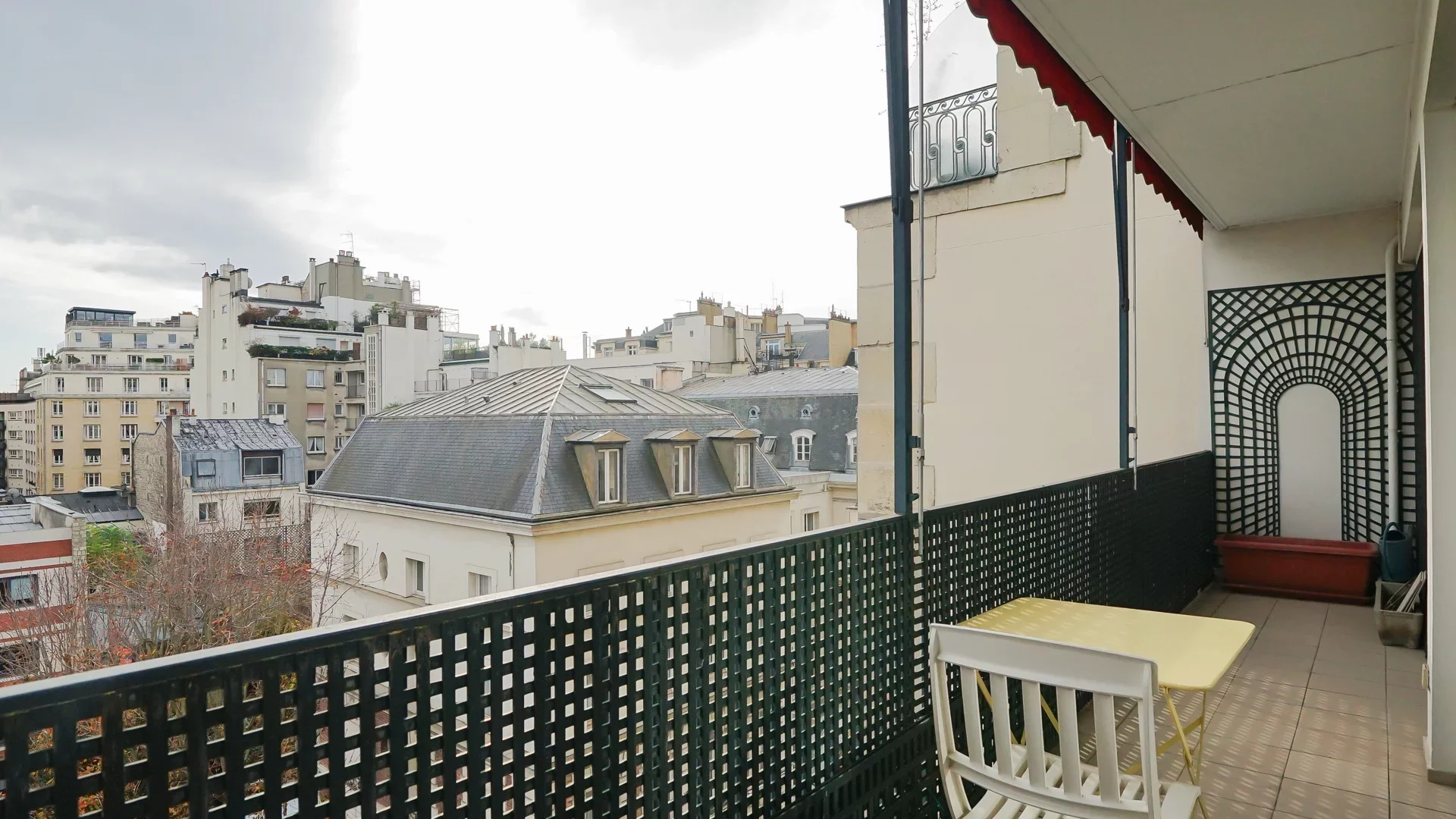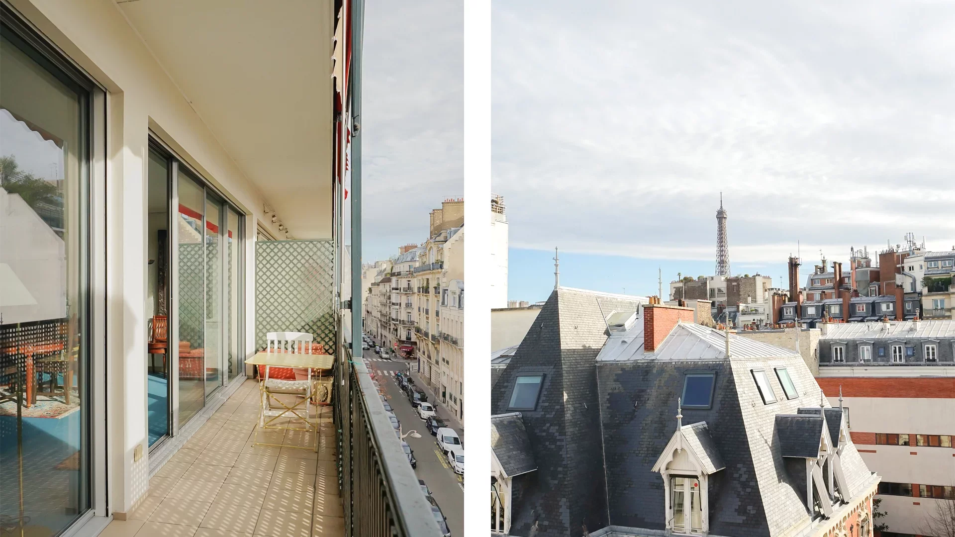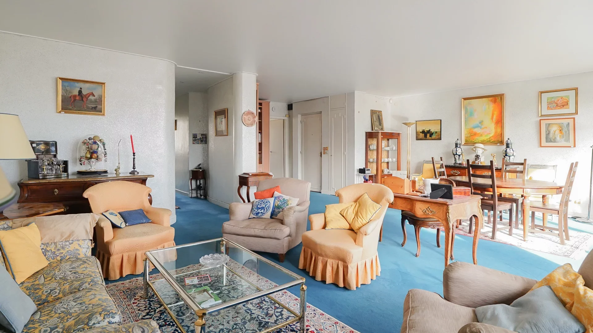 Idéalement situé dans une élégante rue du quartier Passy, c'est au 5ème par ascenseur d'une copropriété semi-récente très bien entretenue que se trouve cet appartement traversant de 98,72m² Carrez. Il comprend, côté Est, un grand séjour de près de 40m², baigné de soleil et longé d'un large balcon avec vue ciel et Tour Eiffel. A l'Ouest se trouvent la cuisine et l'office ainsi que la chambre. La salle de bains est assez grande pour installer douche et baignoire. Les toilettes sont indépendantes. L'appartement est à rénover. Il est facilement possible de créer une deuxième chambre, comme dans son plan d'origine. Une cave complète cette offre. Un parking est proposé en supplément à 60 000€.
