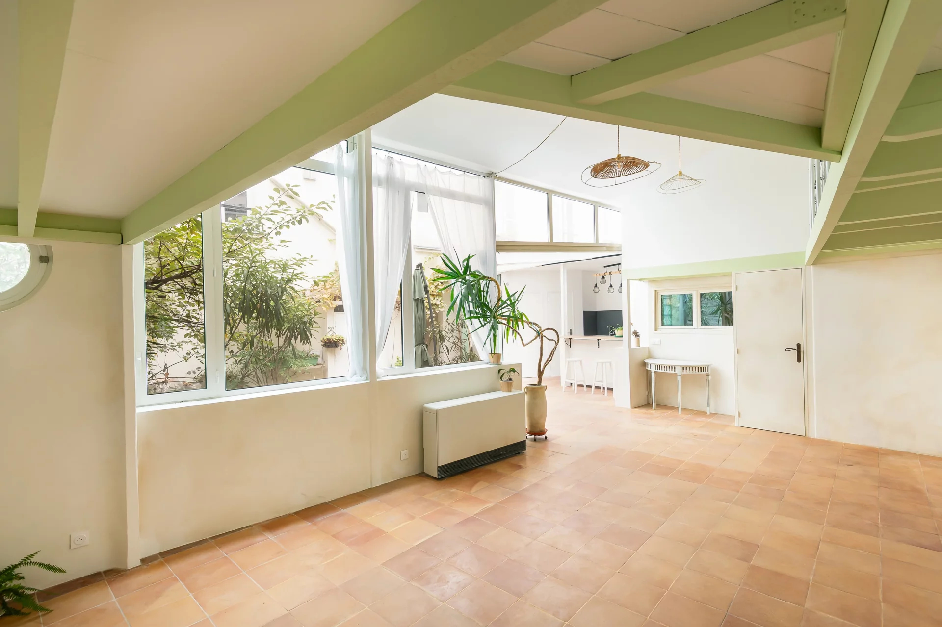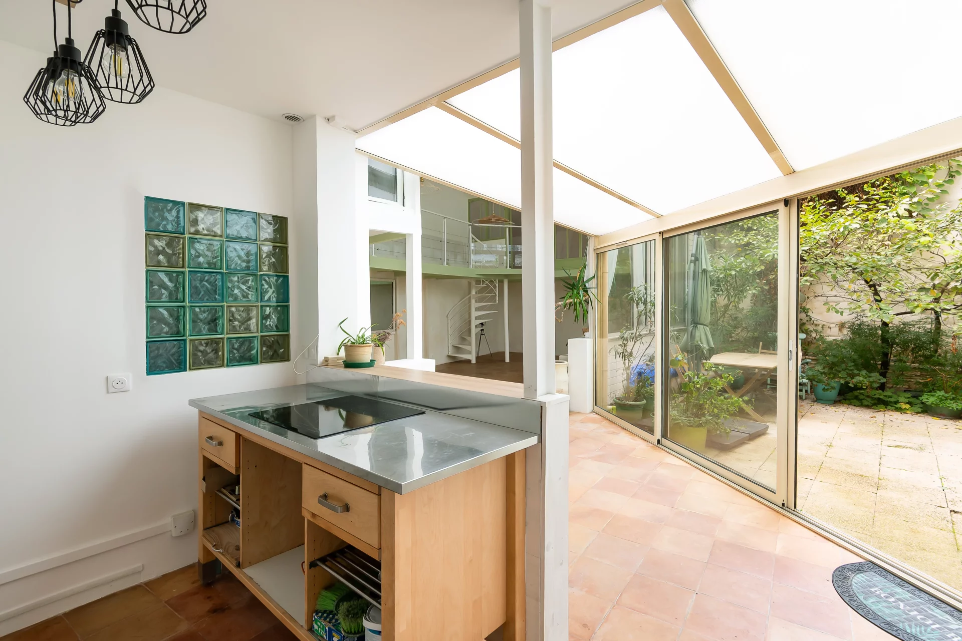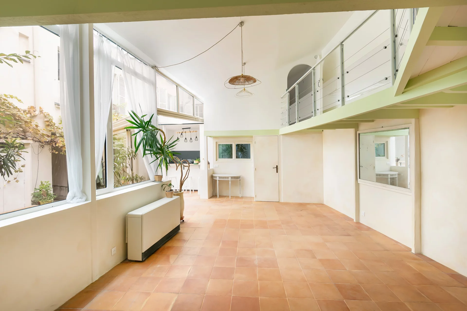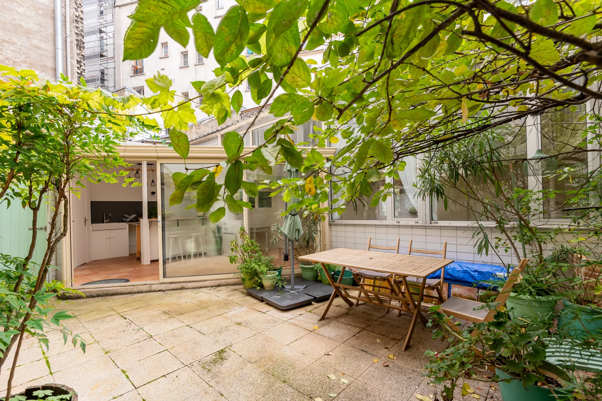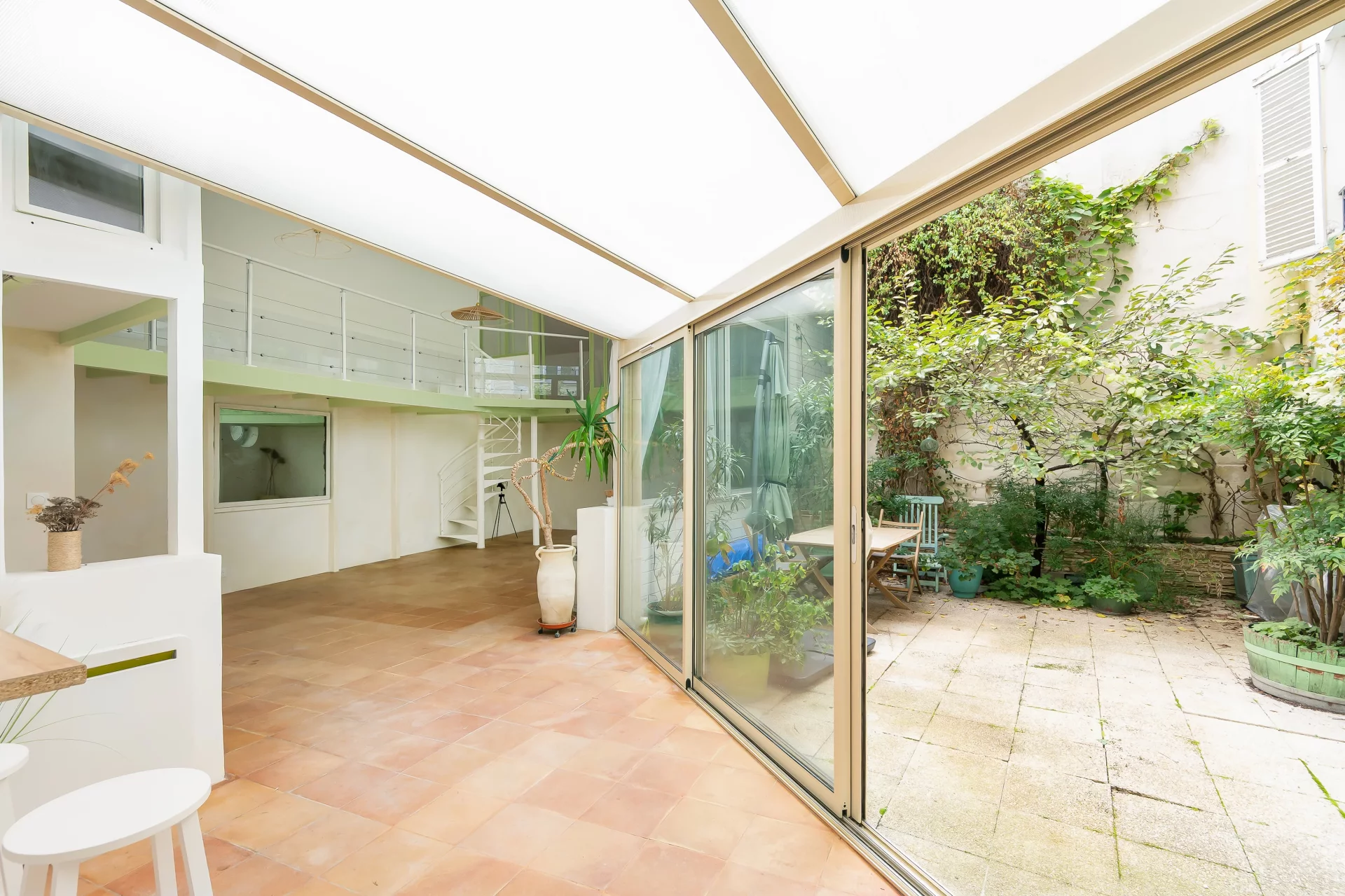 Ancien atelier comme une maison donnant sur une terrasse privative en pleine propriété au calme absolu et à l'abri des regards, situé au cœur du village Ramey proche du métro et des commerces.