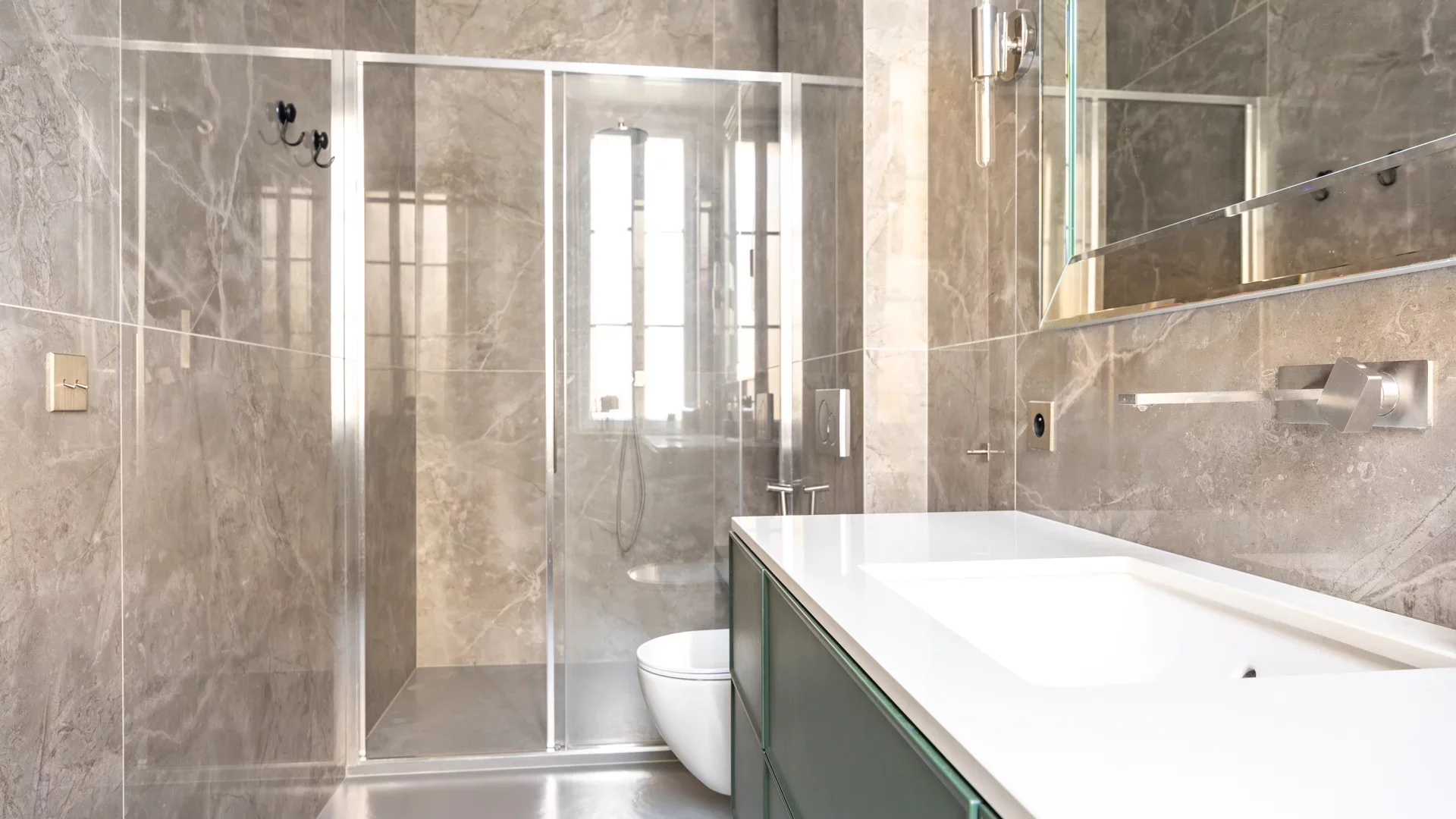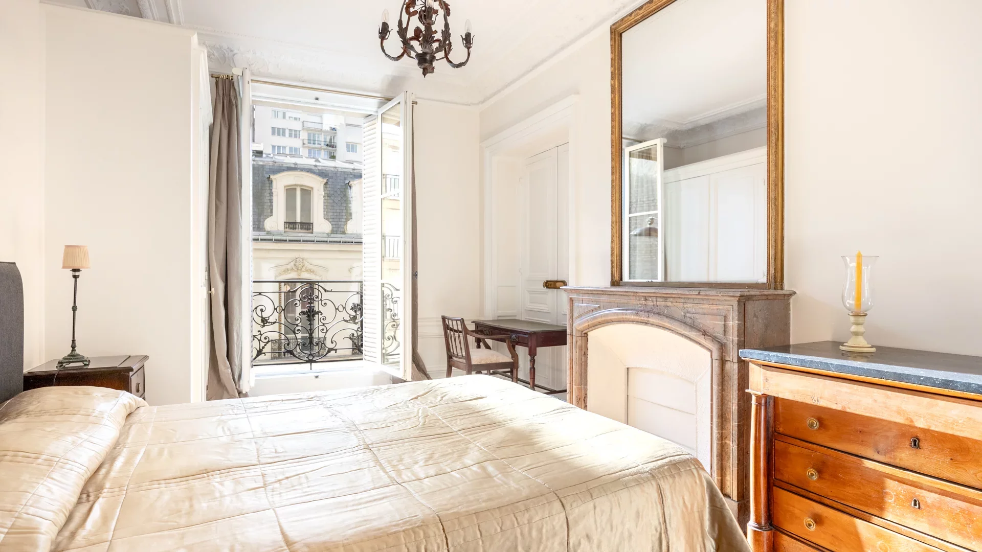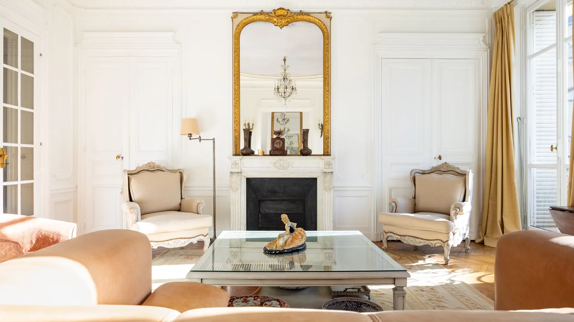 Cet appartement séduit par son excellente distribution et ses beaux volumes, HSP 3.20m, sublimés par les éléments d’origine : parquets, moulures, cheminées et fresques peintes, qui lui confèrent une élégance rare.
