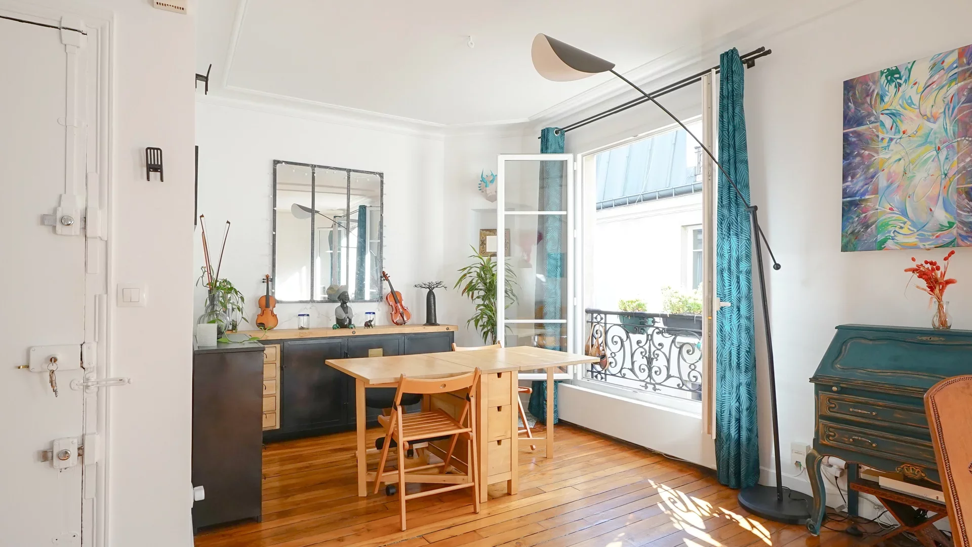 Au pied de la butte Montmartre, à quelques pas de la rue des Martyrs, cet appartement de 42,80m² loi Carrez au calme absolu, bénéficie d'un plan parfait et d'une belle lumière grâce à son exposition OUEST.