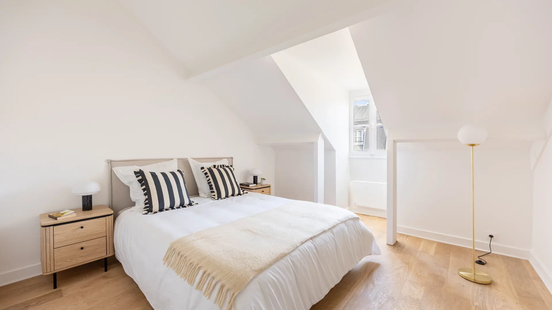 Idéalement situé dans le Marais au pied du métro Hôtel de Ville, dans un immeuble intégralement rénové, un appartement traversant à l'esprit maison d'une surface de 80,66m² loi Carrez et 92,06m² au sol. Accessible au cinquième et dernier étage par ascenseur, il se compose d'une agréable pièce à vivre avec cuisine ouverte, de deux chambres à l'étage supérieur avec salle de bains, et d'une dernière chambre ainsi qu'un coin bureau au dernier étage, avec salle de douche et deux toilettes. Vous serez séduits par son emplacement central, son plan parfaitement optimisé et son format familial.