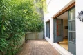 En rez-de-chaussée, une entrée dessert une spacieuse chambre ouvrant de plain-pied sur une terrasse arborée, une salle de bains, une cuisine et des toilettes indépendantes.