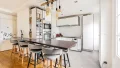 Le plan compact comprend un double séjour avec sa cuisine dînatoire intégralement équipée, une chambre avec dressing et une salle de douche avec ses toilettes.