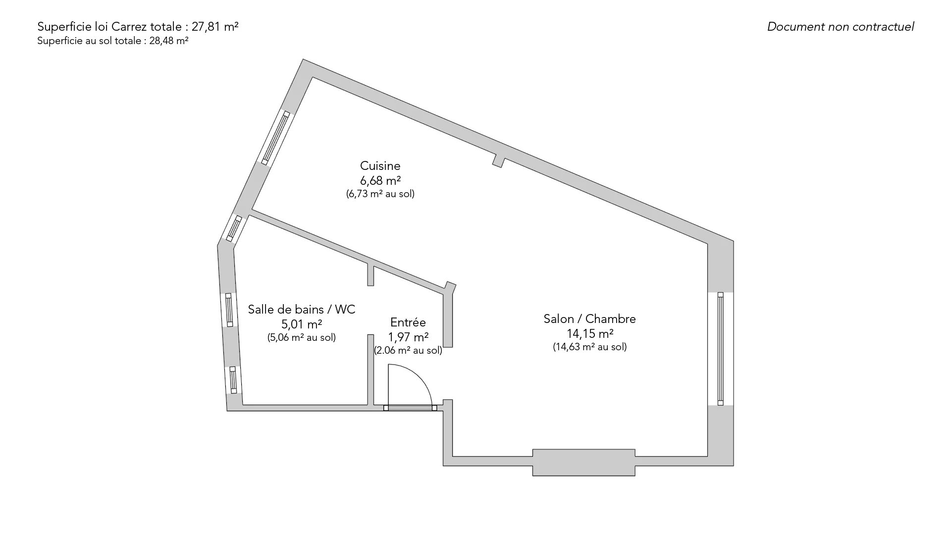 | 1x Pièce de vie | 14.15 m² | Étage : 1er |