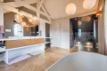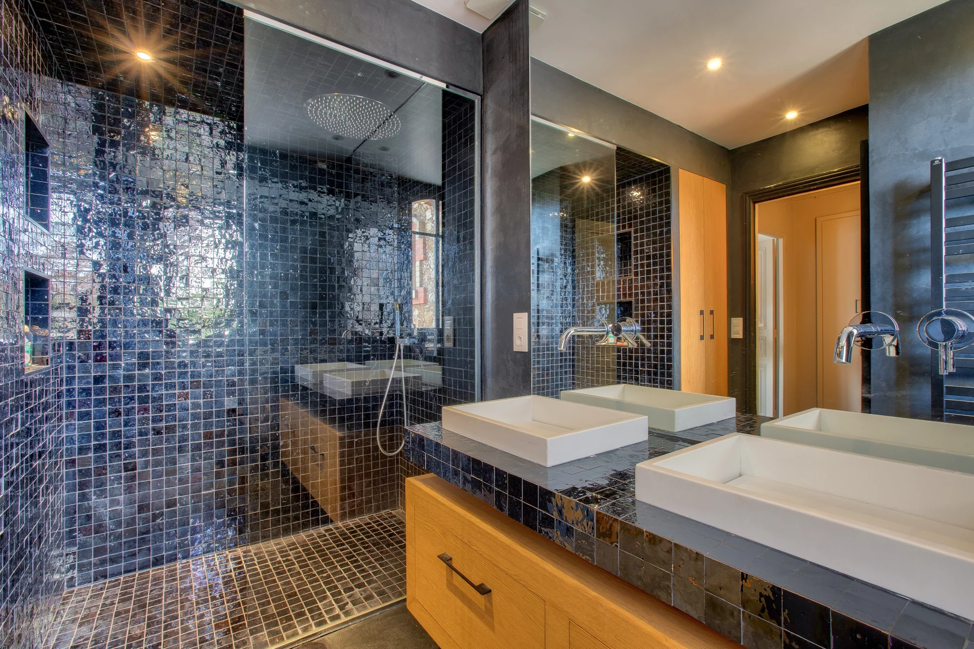 Le dernier niveau est entièrement dédié à la suite parentale : un véritable cocon avec salle de bains (baignoire, douche à l’italienne, WC indépendant), deux dressings et une terrasse plein soleil.