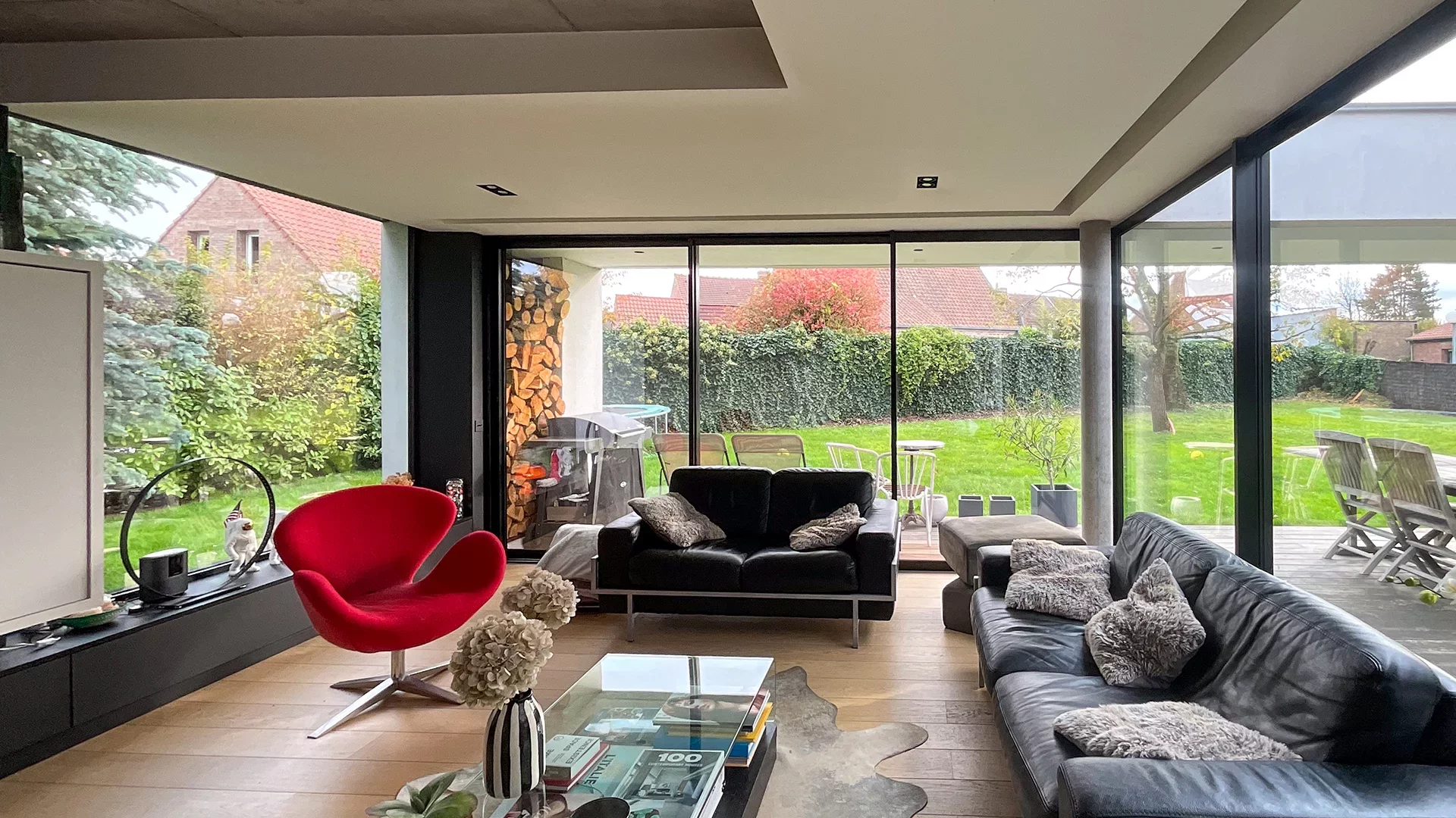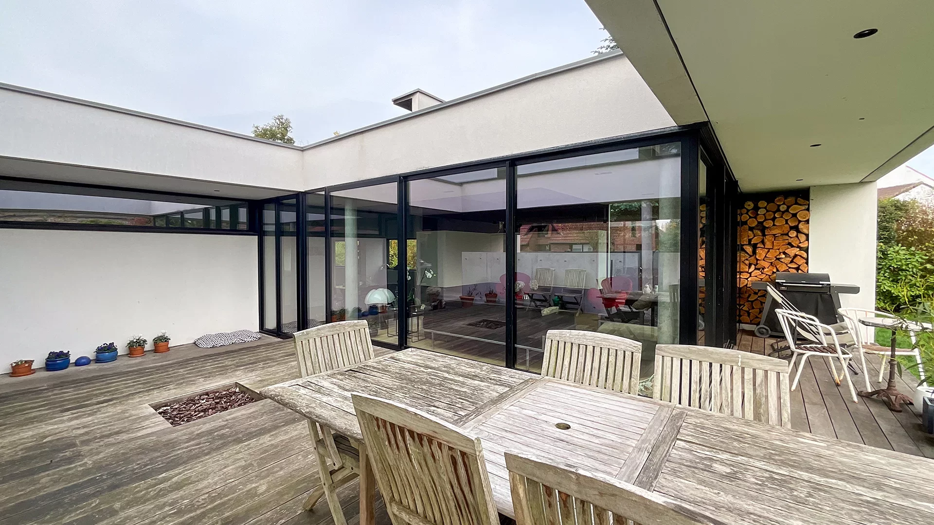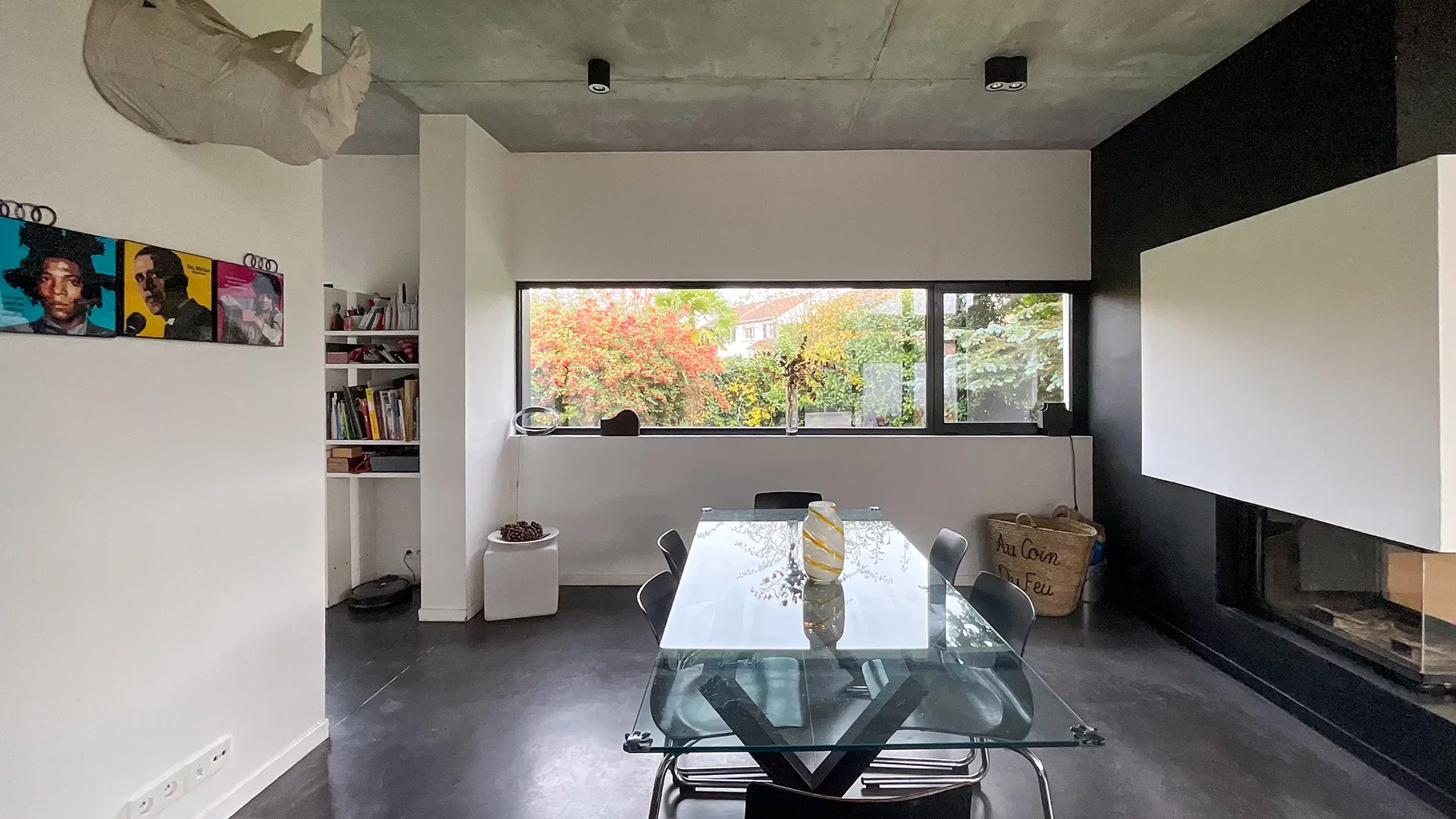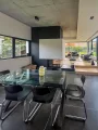 L’entrée lumineuse donne le donne le ton et vous emmène vers une pièce de vie de 65m² triple exposition, avec salon cheminée feu de bois, salle à manger et vaste cuisine équipée. L’ensemble est ultra lumineux et le partis-pris contemporain et chaleureux.