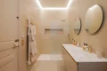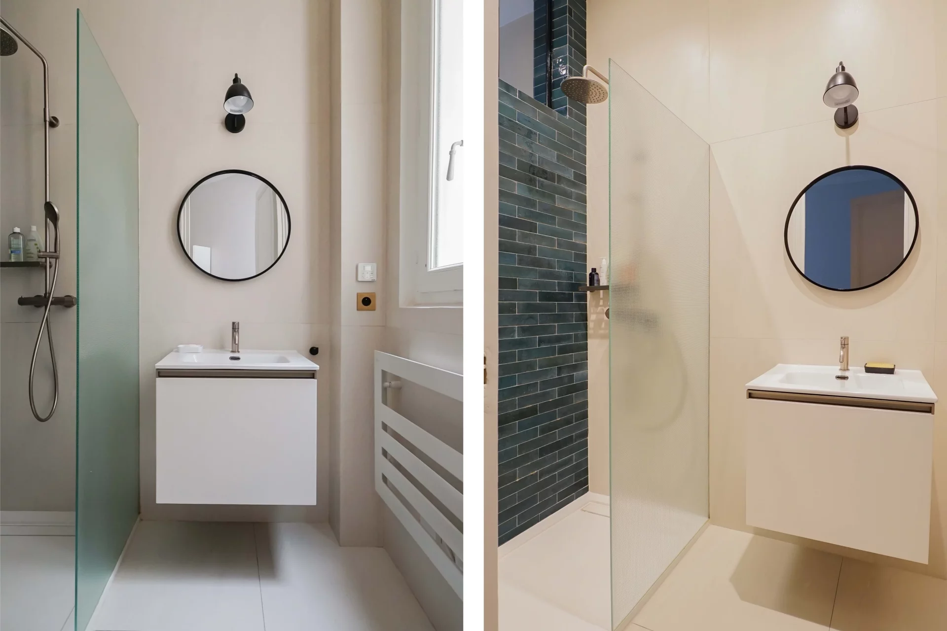 La suite parentale sur cour végétalisée avec dressing double et salle de douche attenante avec toilettes forme un espace intime et chaleureux.